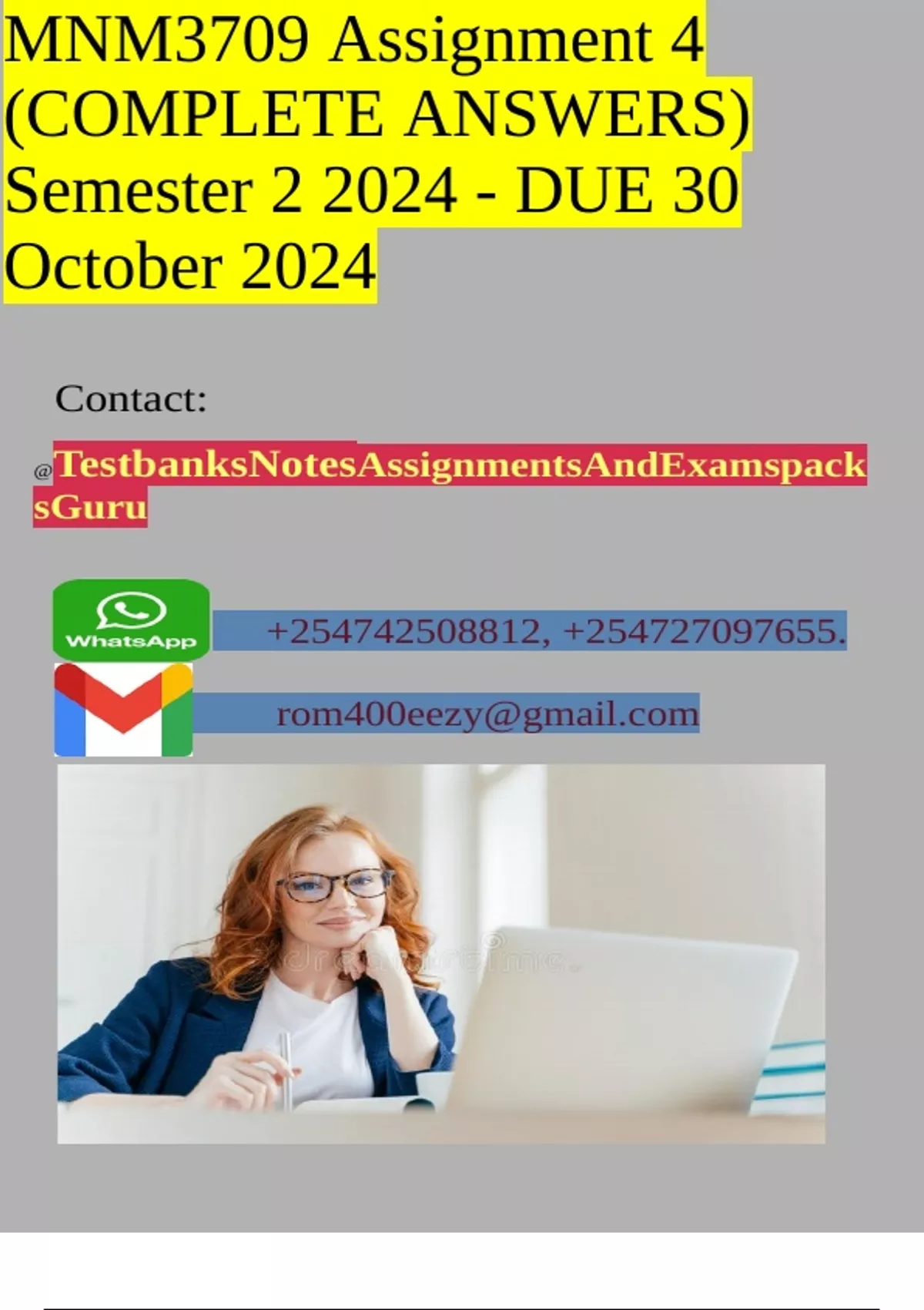 MNM3709 Assignment 4 (COMPLETE ANSWERS) Semester 2 2024 - DUE 30 October 2024