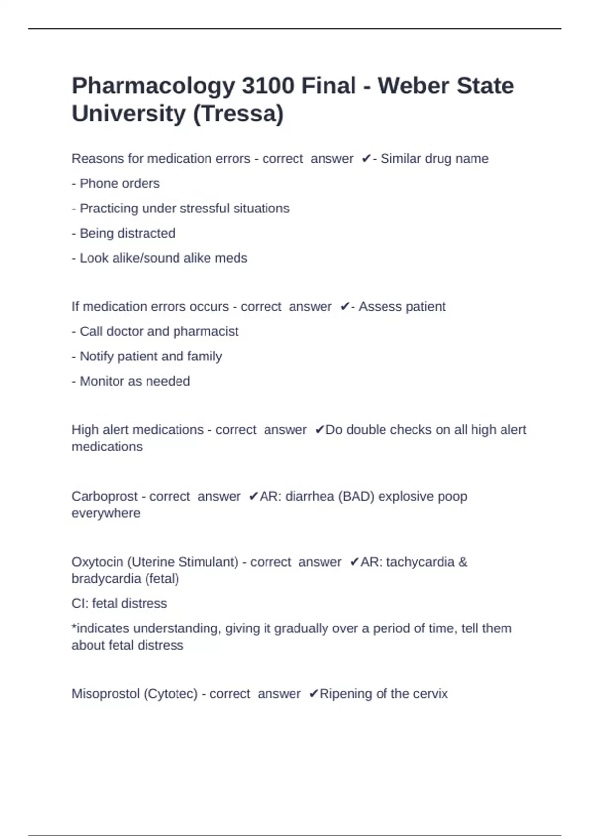 Oxytocin (Uterine Stimulant) - correct answer ✔AR: tachycardia &