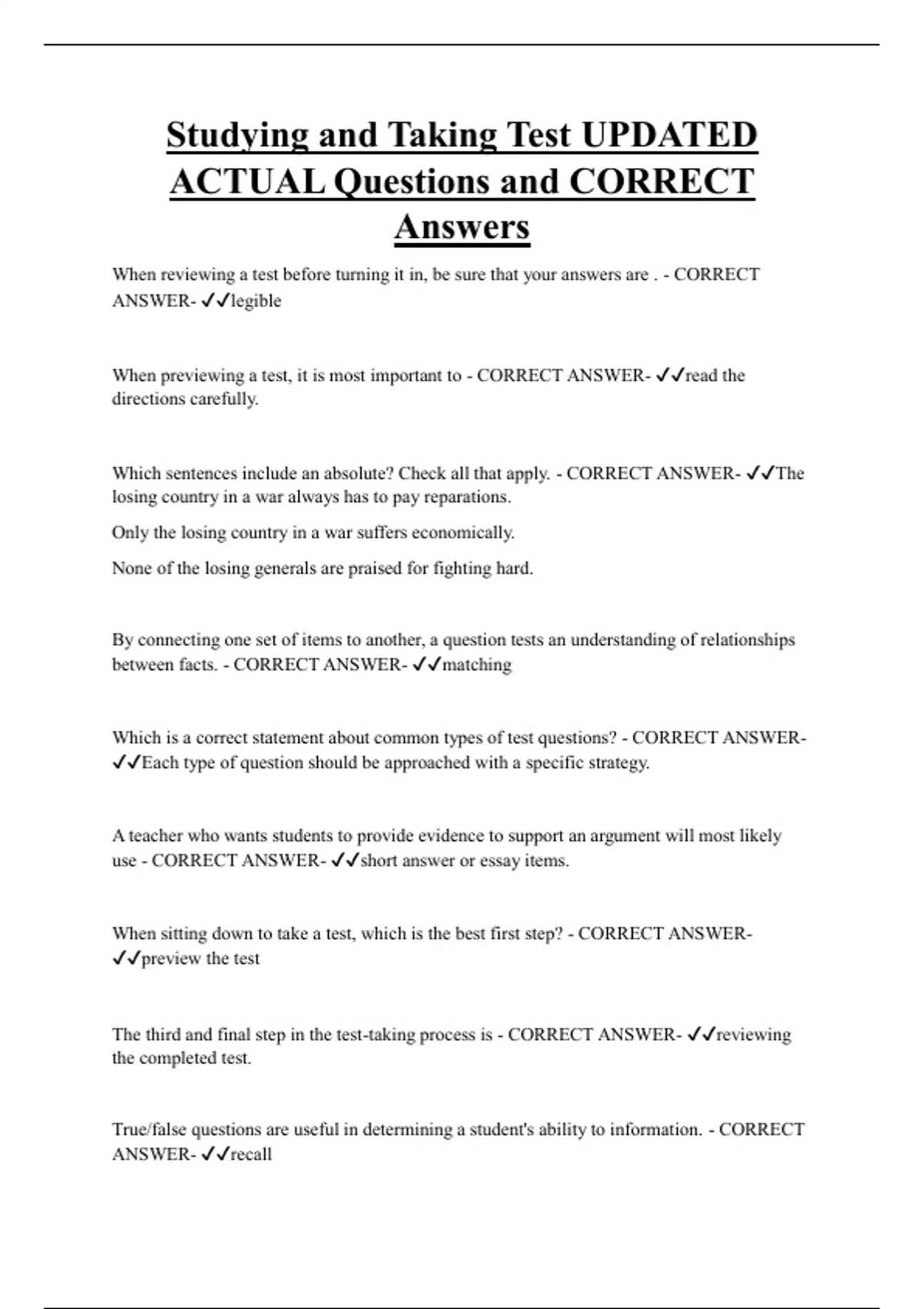 When previewing a test, it is most important to - CORRECT ANSWER- ✔✔read the