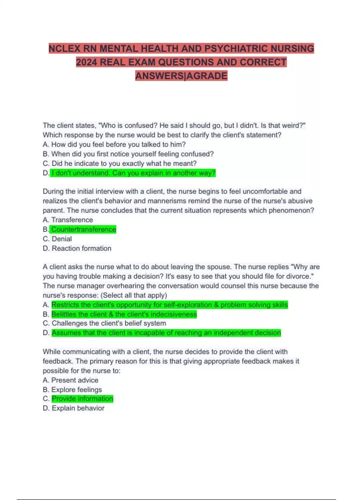 NCLEX RN MENTAL HEALTH AND PSYCHIATRIC NURSING