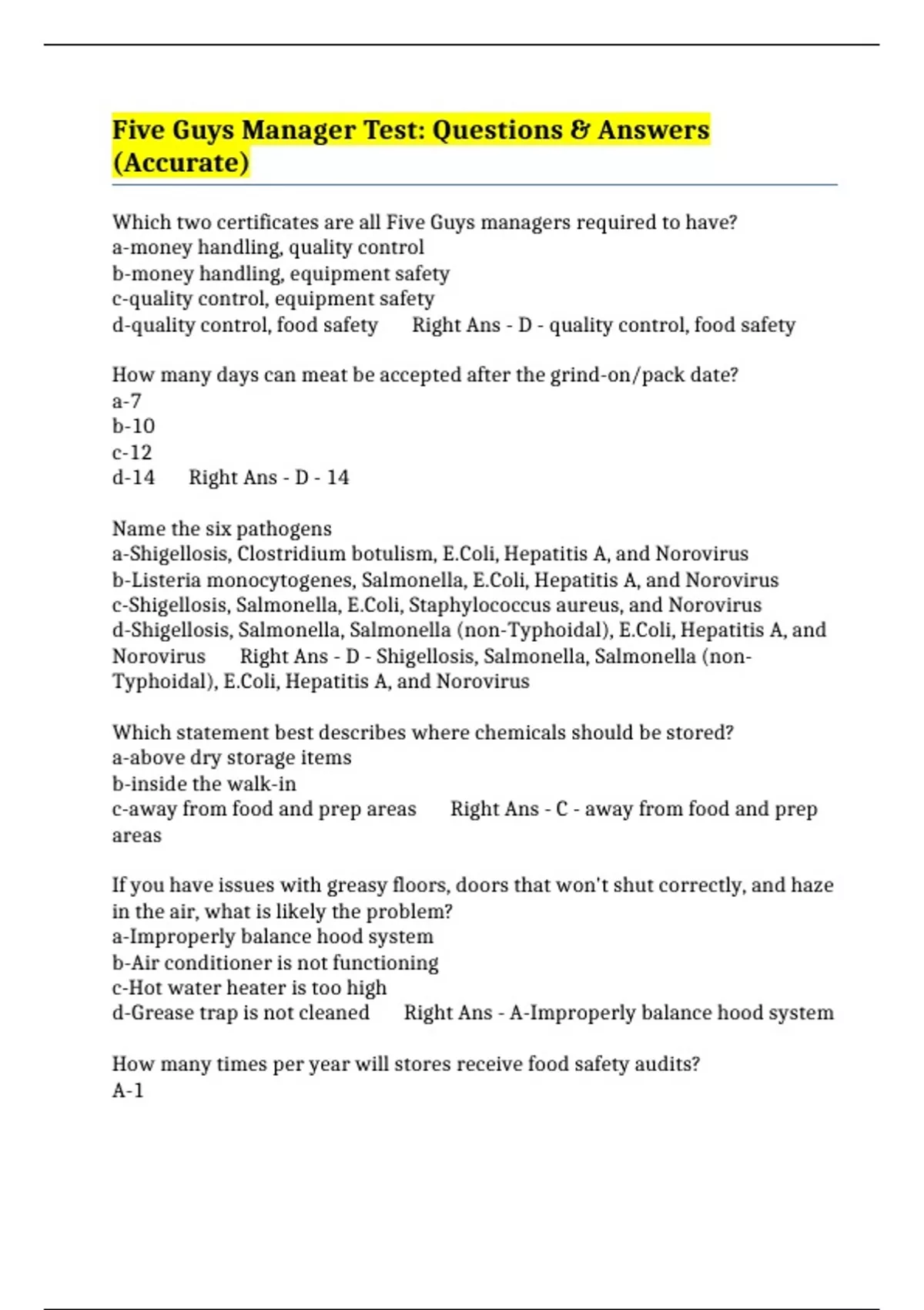 Which two certificates are all Five Guys managers required to have?