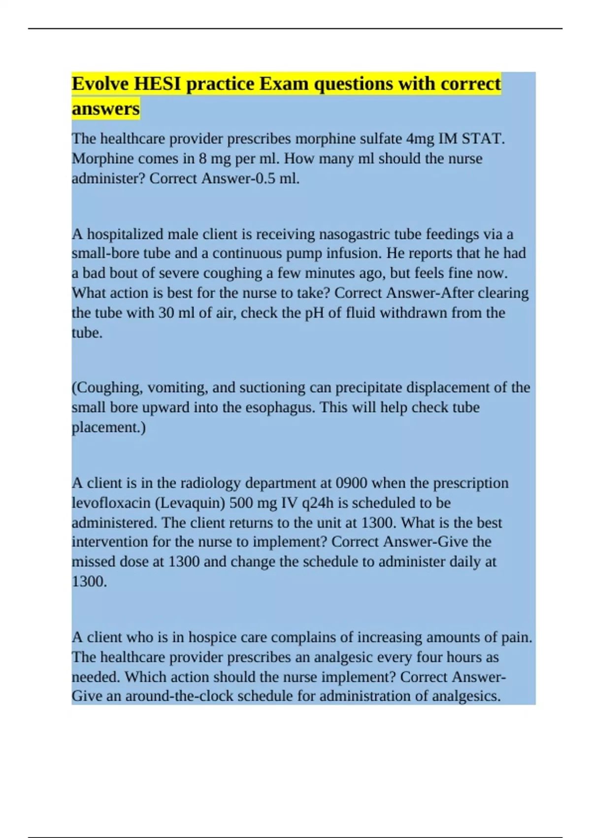 What action is best for the nurse to take? Correct Answer-After clearing