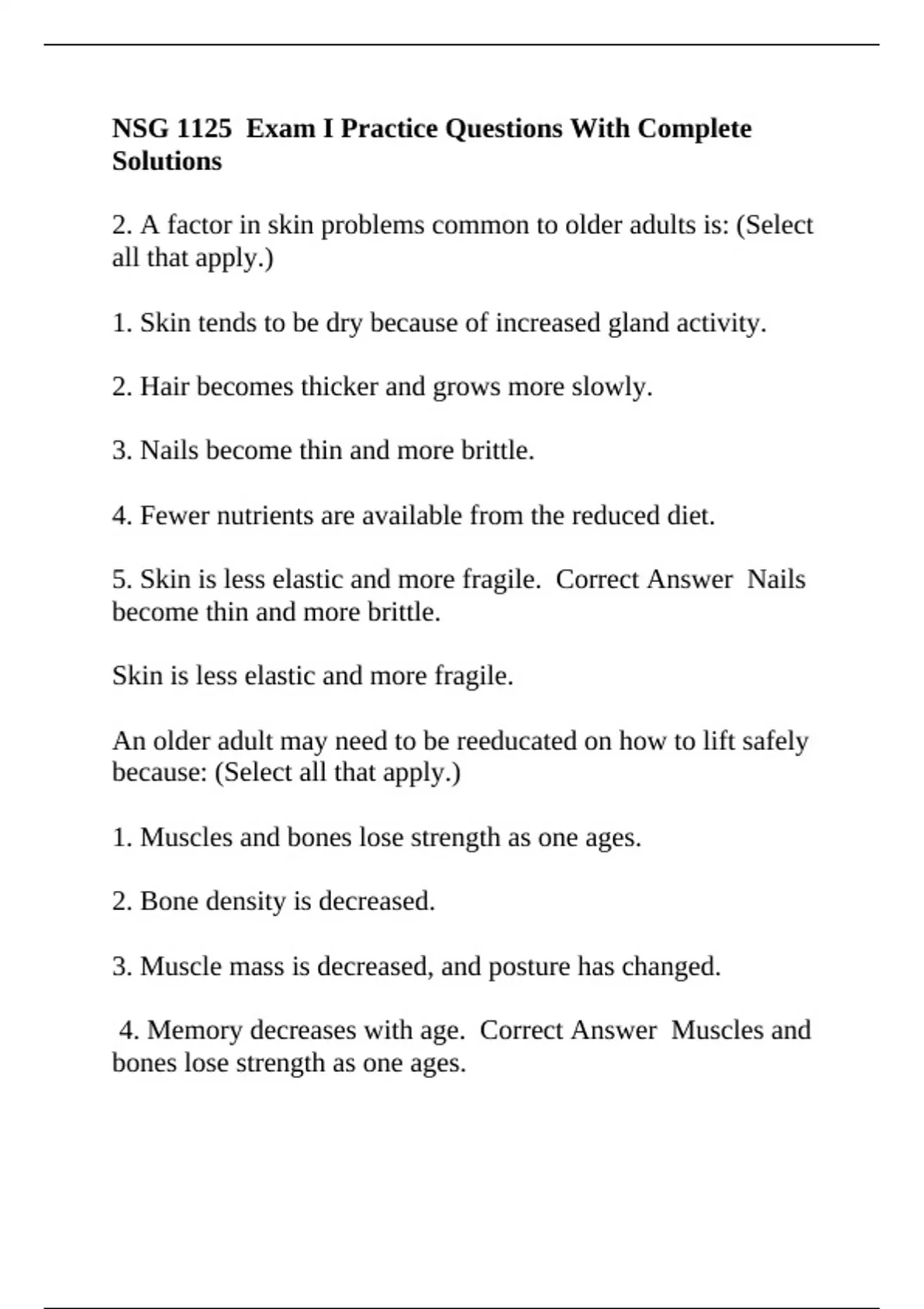 4. Memory decreases with age. Correct Answer Muscles and