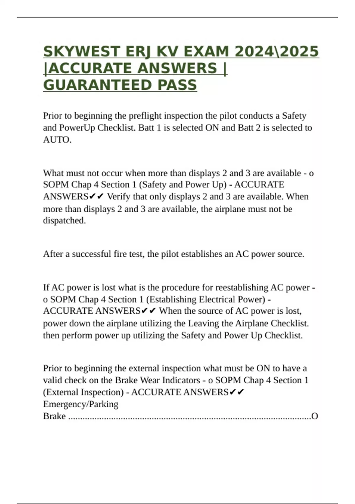SKYWEST ERJ KV EXAM |ACCURATE ANSWERS |GUARANTEED PASS