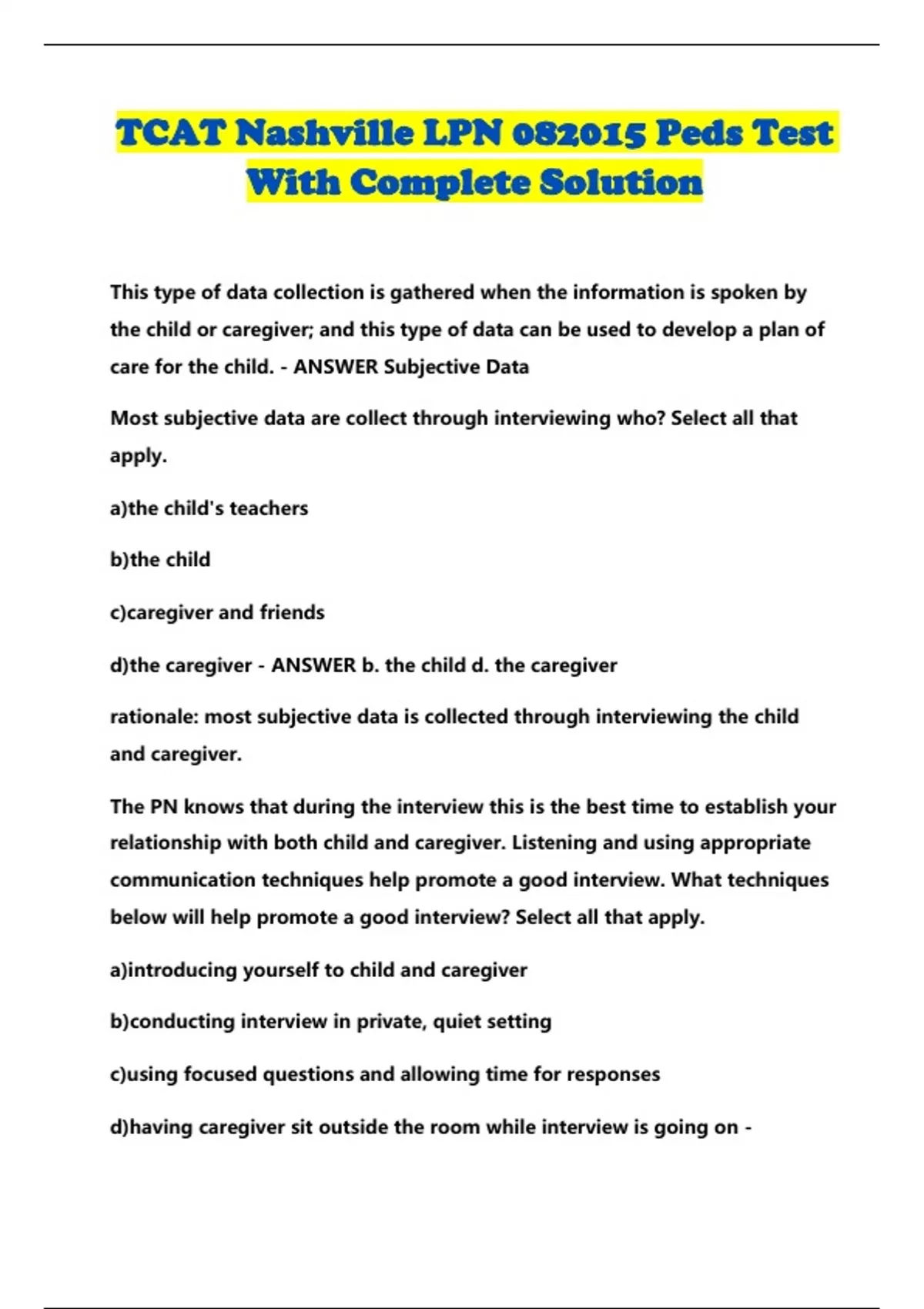 care for the child. - ANSWER Subjective Data