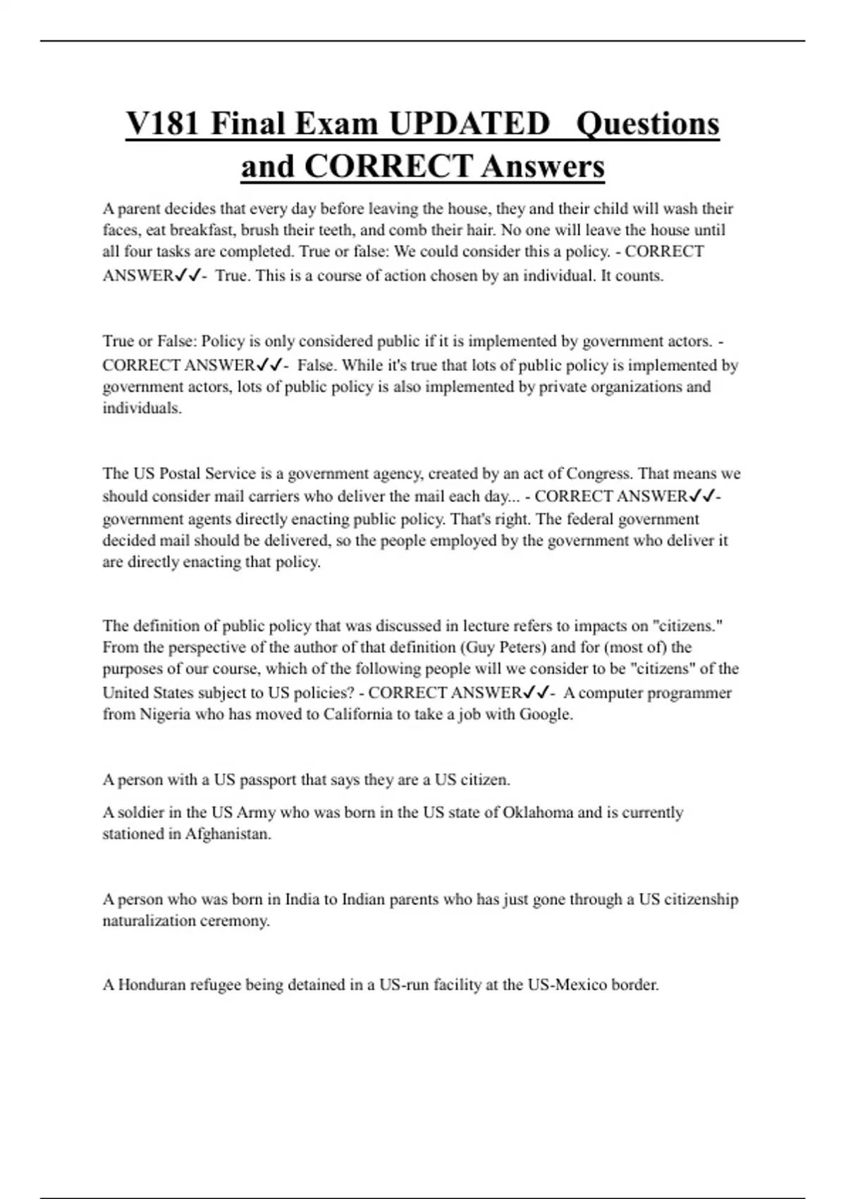 CORRECT ANSWER✔✔- False. While it's true that lots of public policy is implemented by