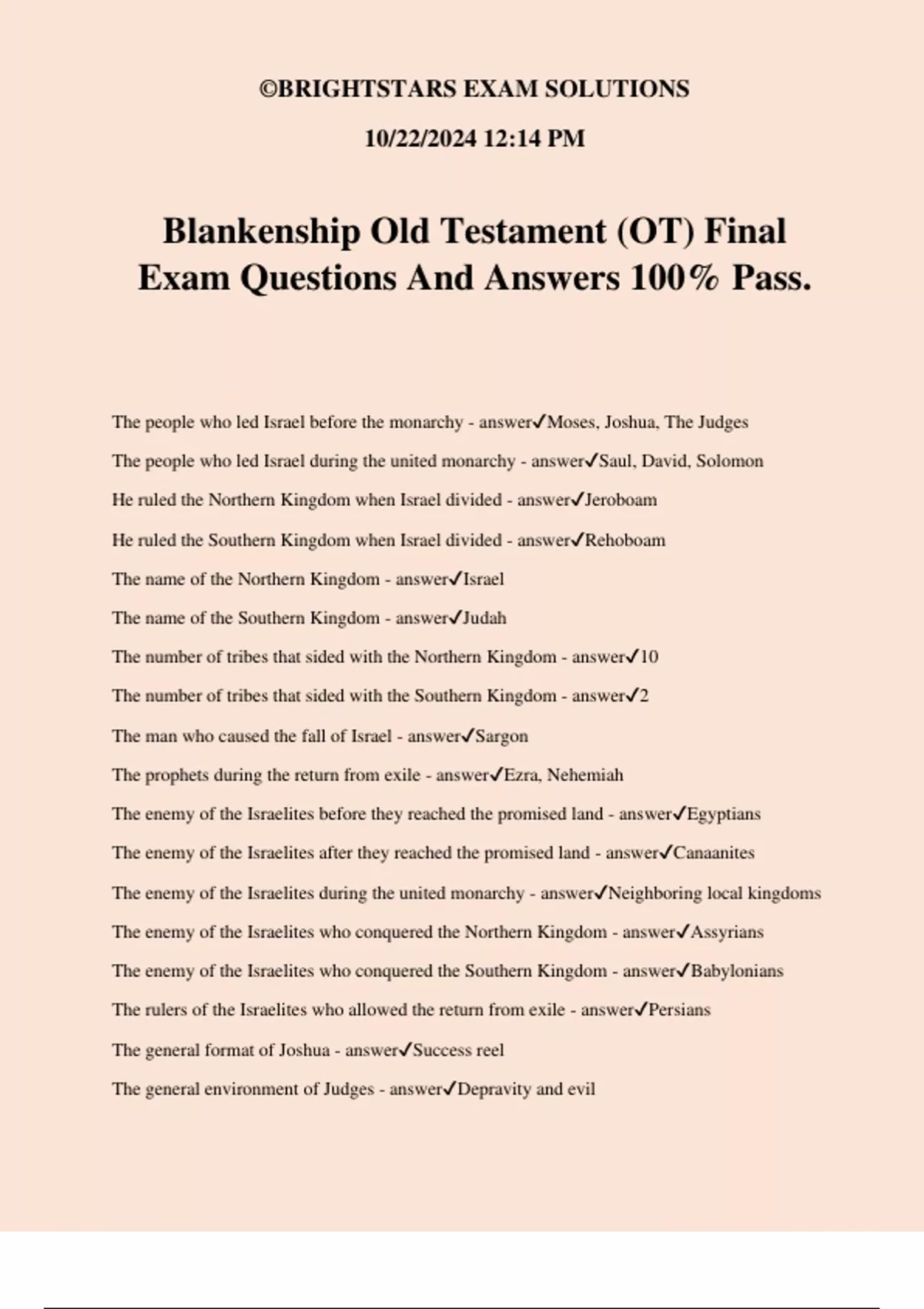 The roles of the prophets - answer✔1. Anoint and overthrow Kings