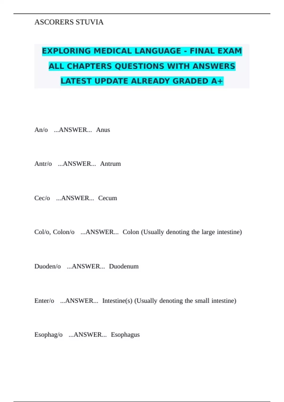 EXPLORING MEDICAL LANGUAGE - FINAL EXAM