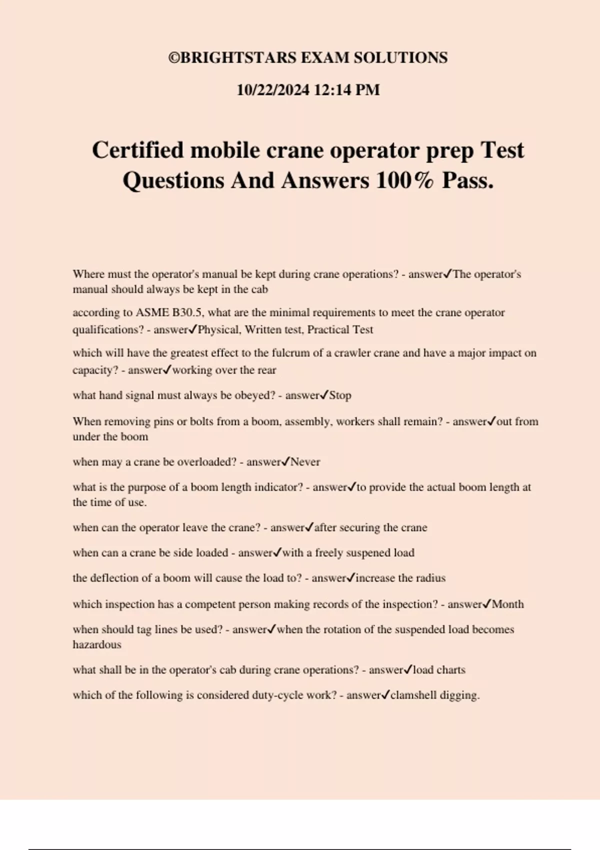 What type of test does a crane inspector have to pass? - answer✔Written test