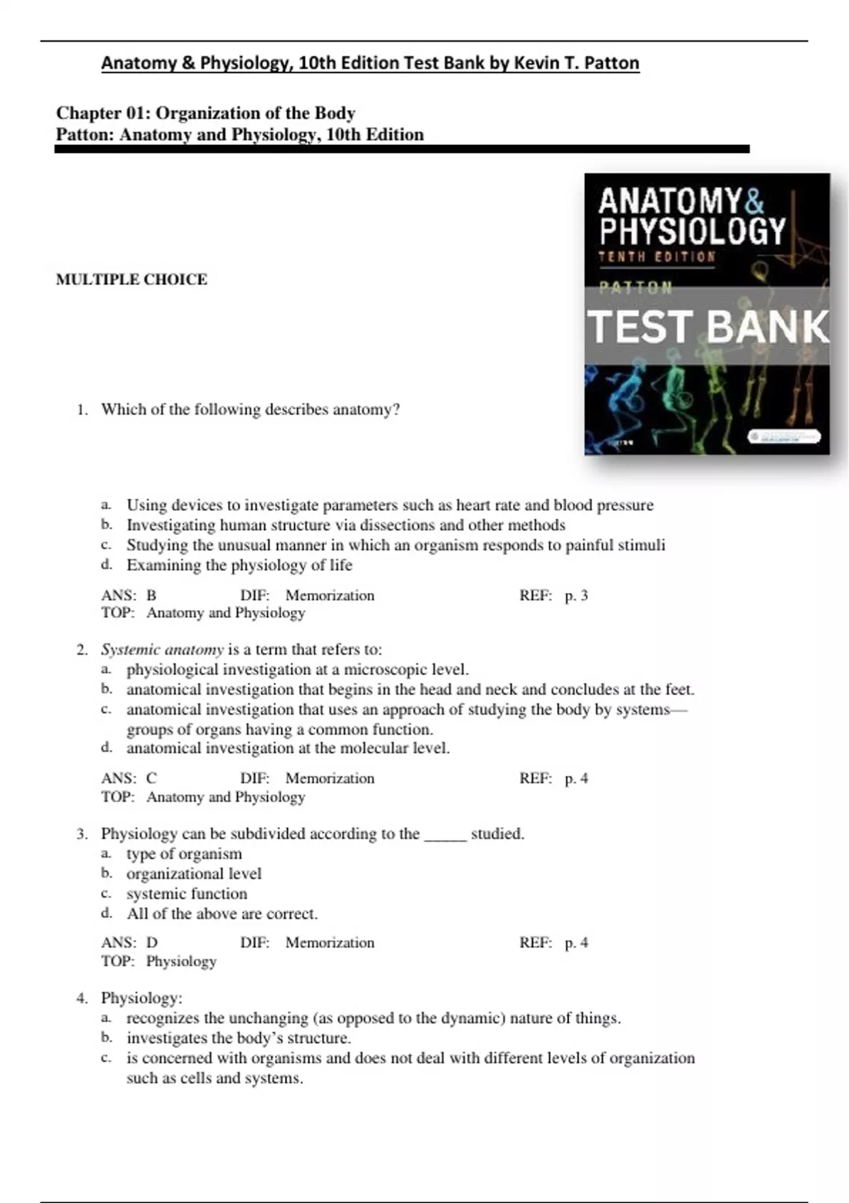 , Anatomy & Physiology, 10th Edition Test Bank by Kevin T. Patton