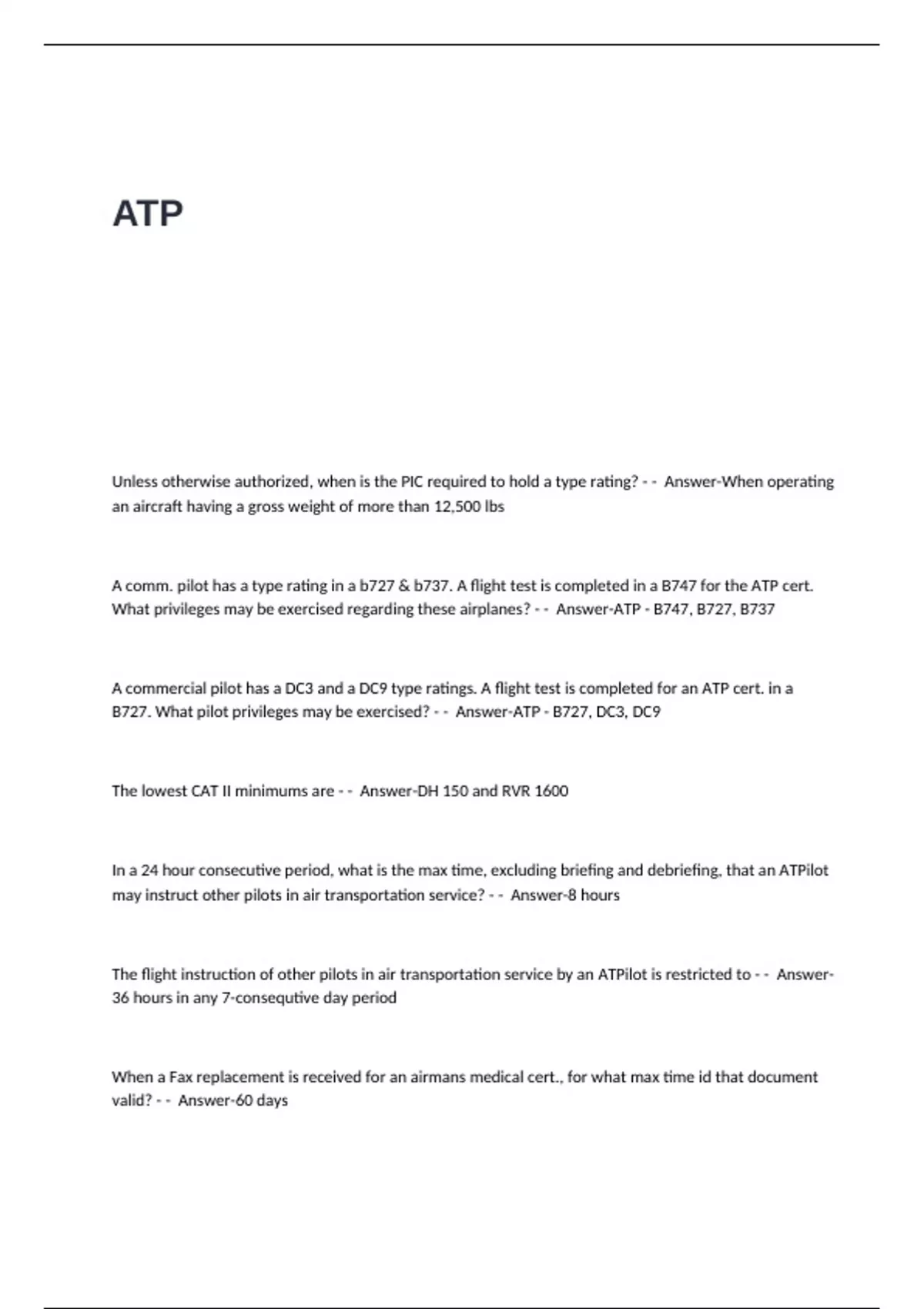 A comm. pilot has a type rating in a b727 & b737. A flight test is completed in a B747 for the ATP cert.