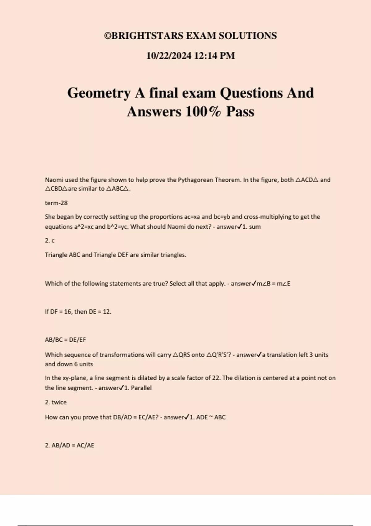 Which of the following statements are true? Select all that apply. - answer✔m∠B = m∠E