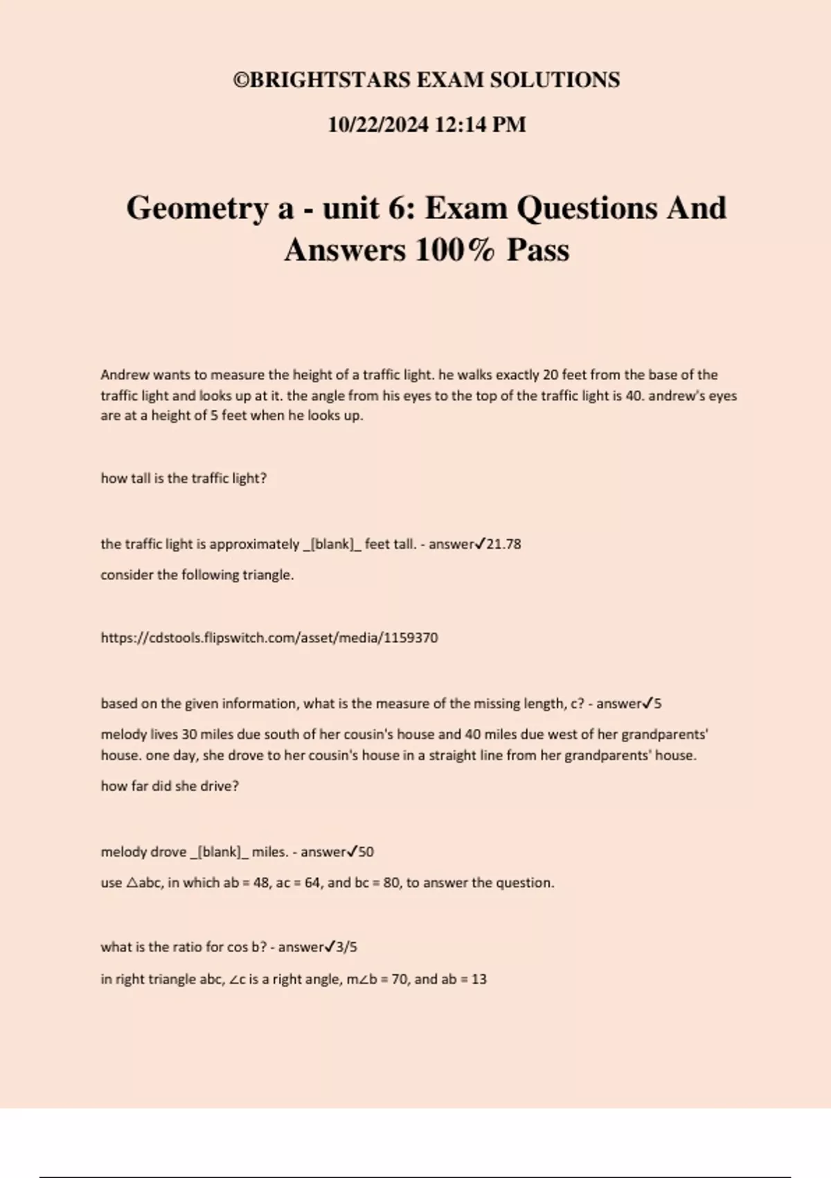 Geometry a - unit 6: Exam Questions And