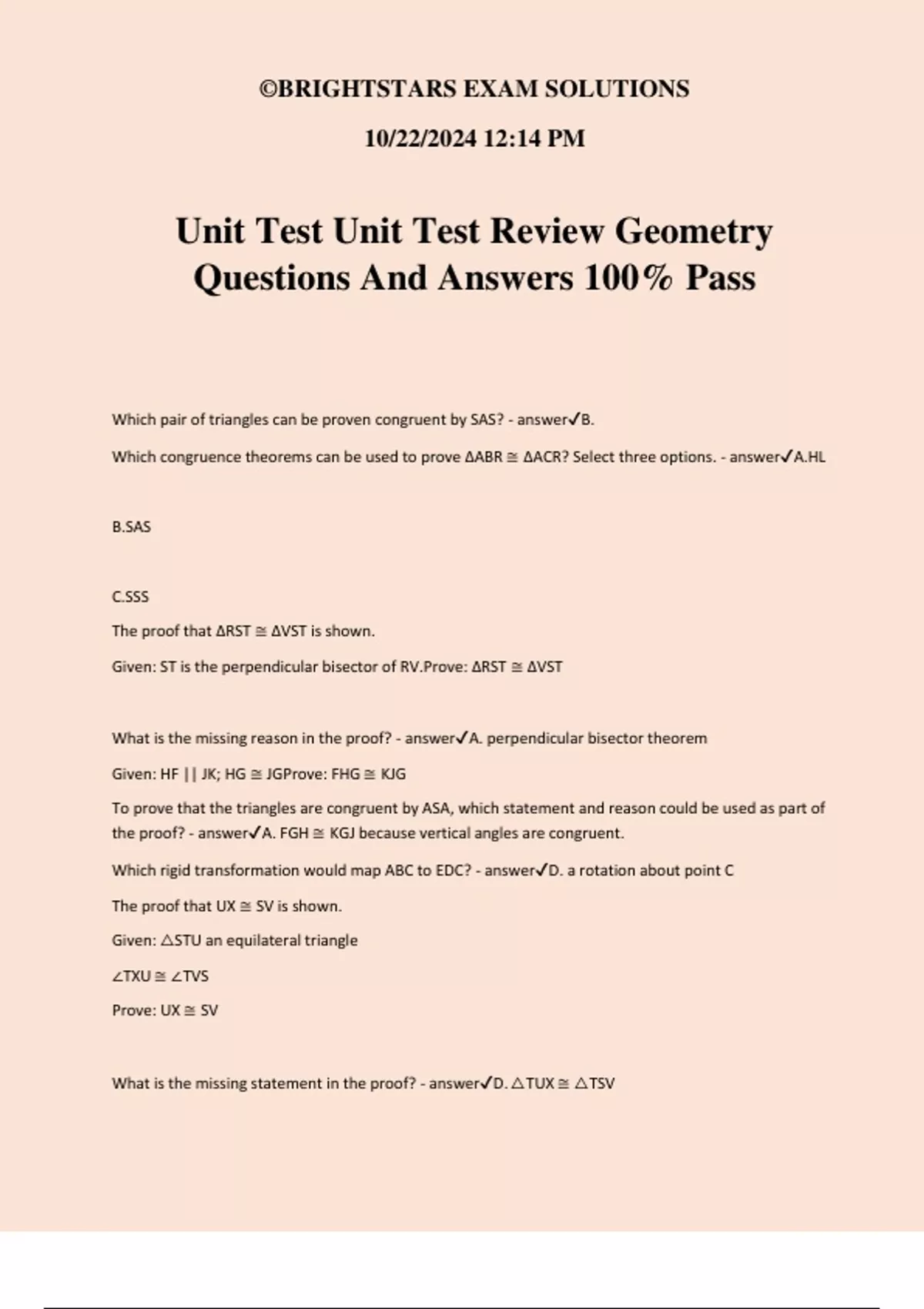 Which pair of triangles can be proven congruent by SAS? - answer✔B.