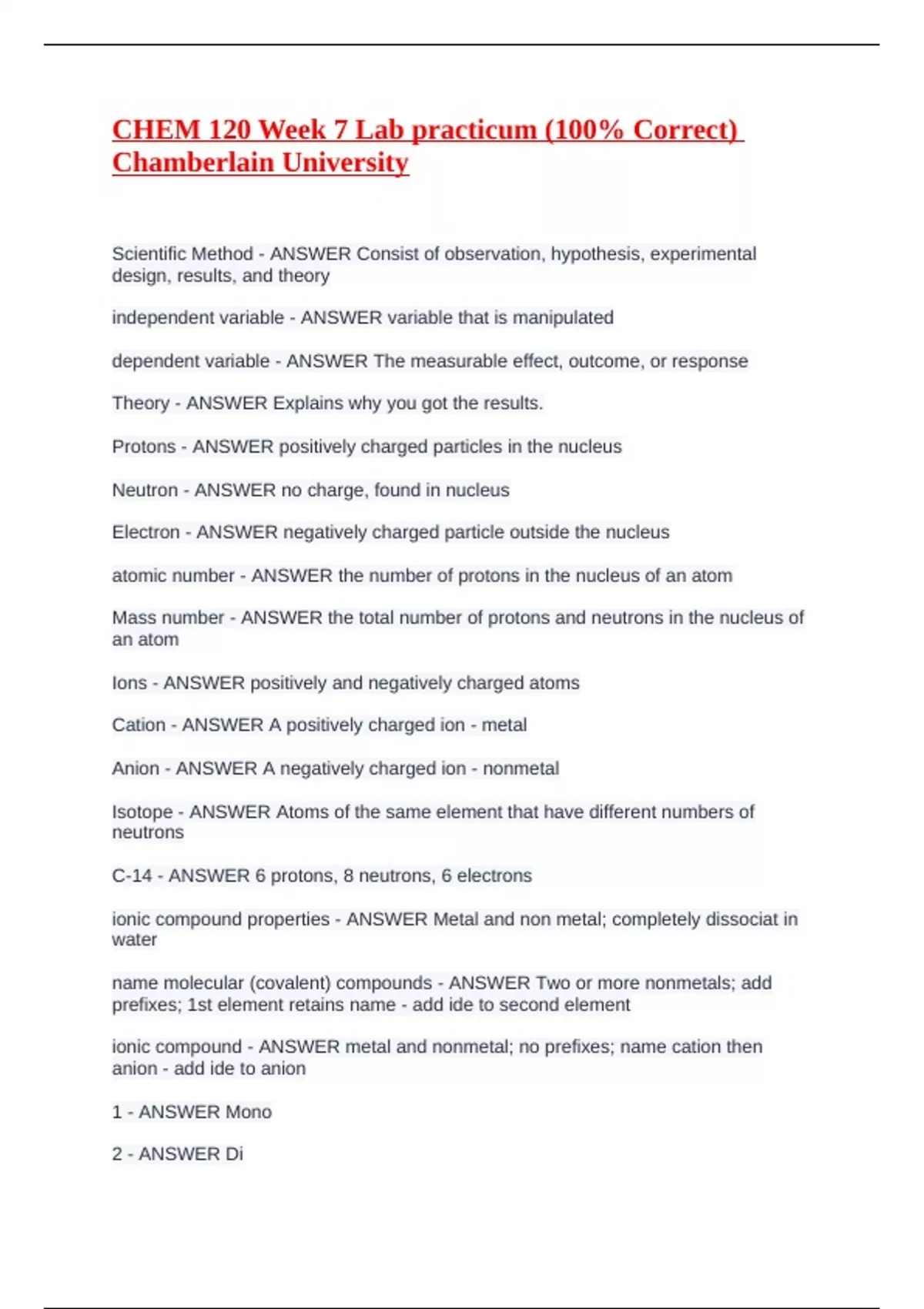 CHEM 120 Week 7 Lab practicum (100% Correct)