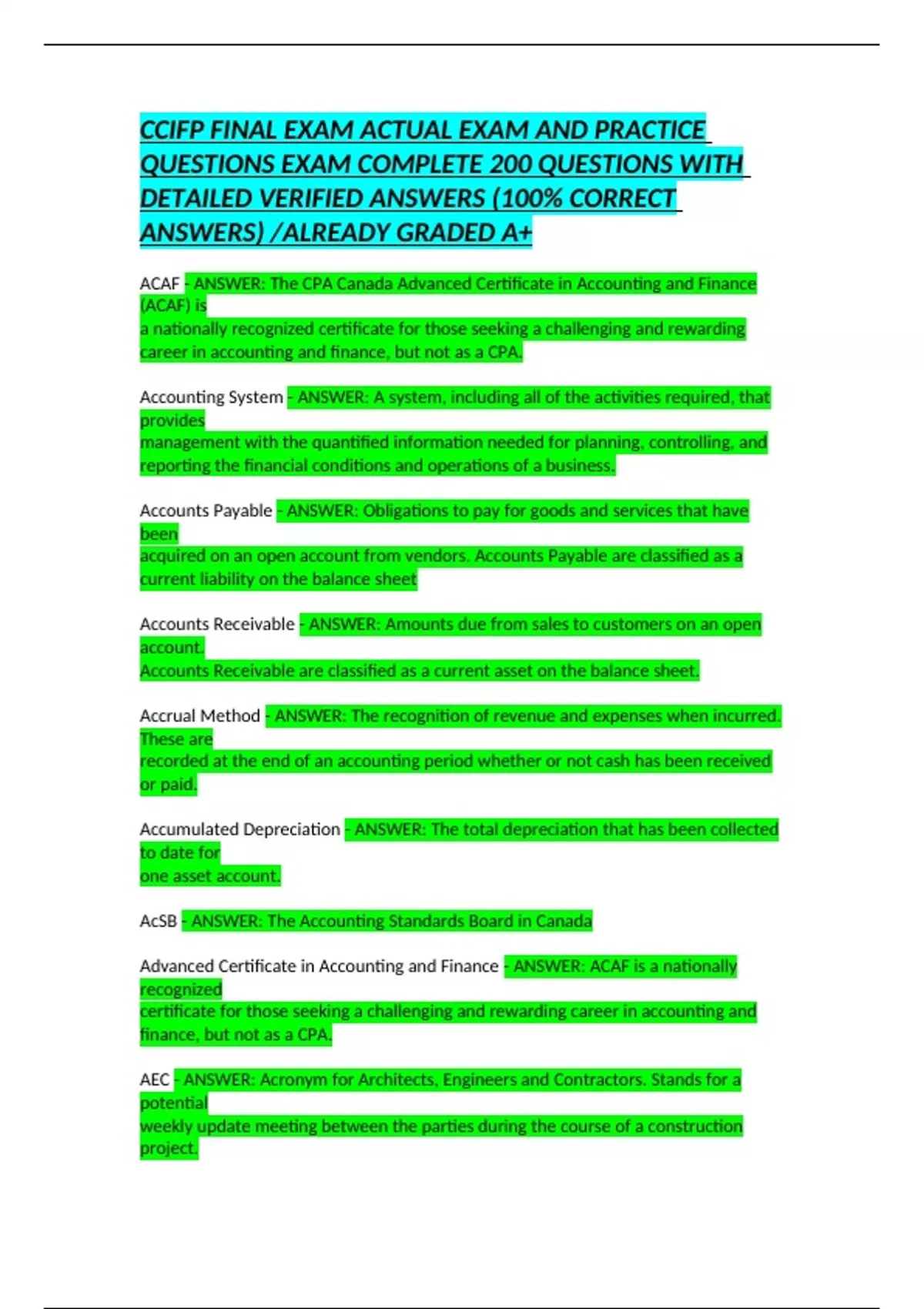 ACAF - ANSWER: The CPA Canada Advanced Certificate in Accounting and Finance