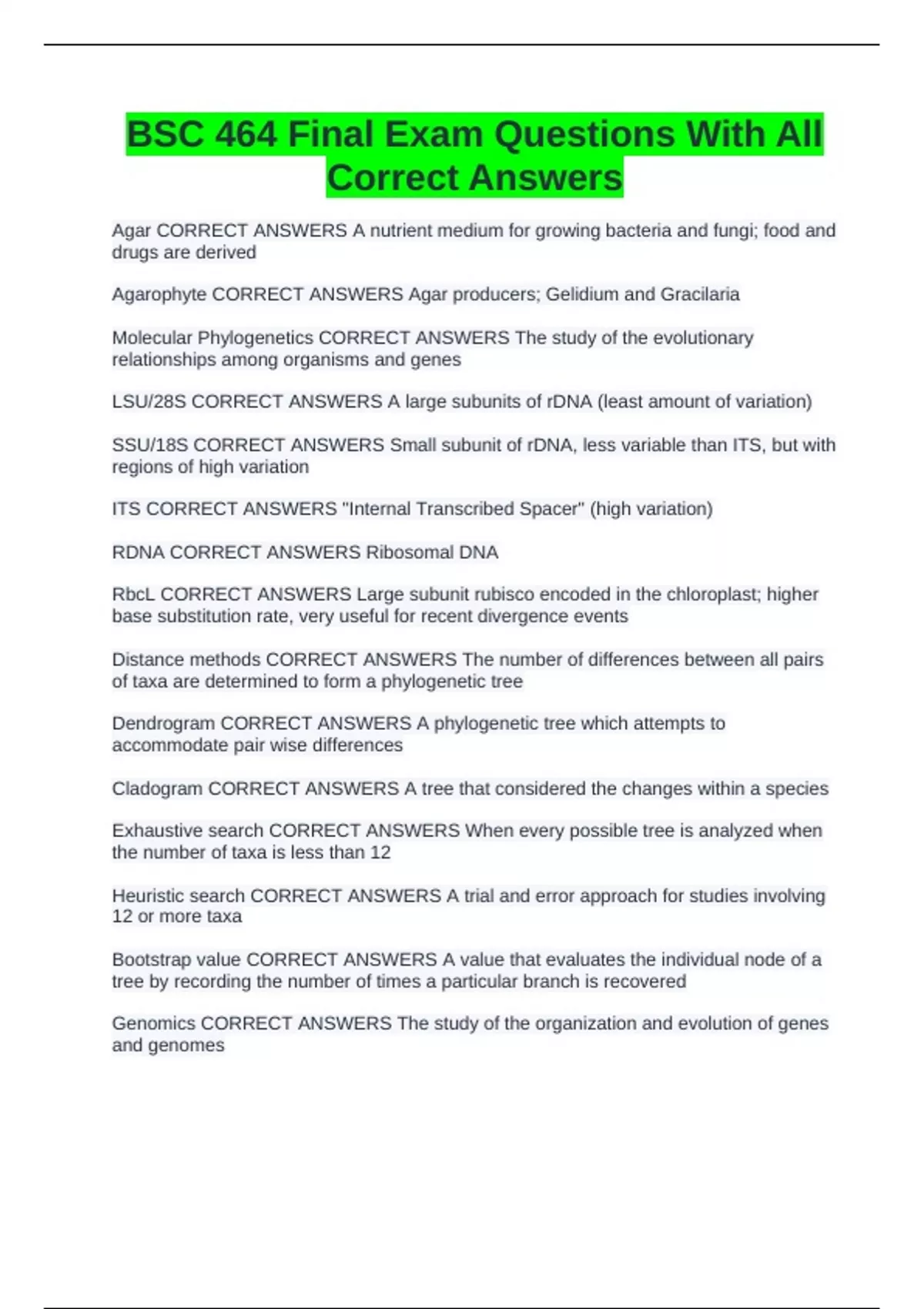 ITS CORRECT ANSWERS "Internal Transcribed Spacer" (high variation)