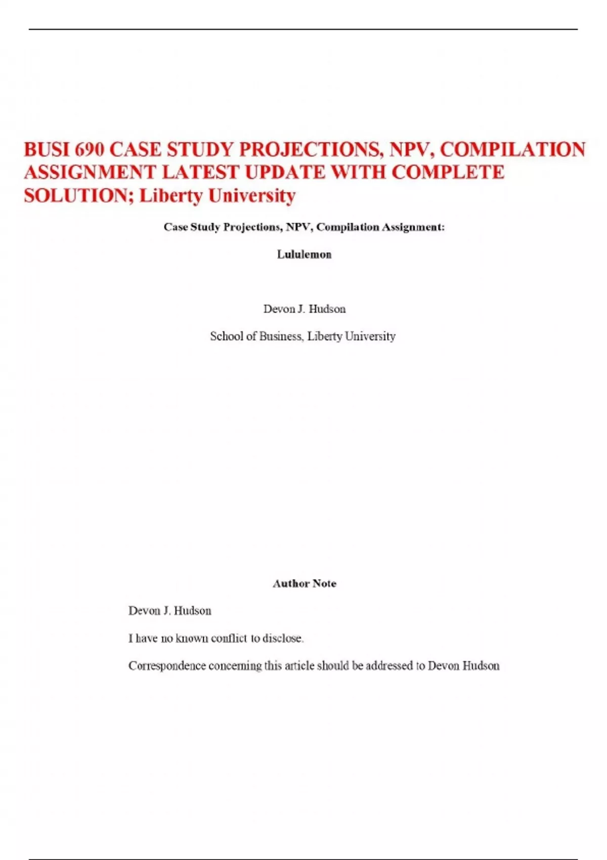 BUSI 690 CASE STUDY PROJECTIONS, NPV, COMPILATION ASSIGNMENT LATEST UPDATE WITH COMPLETE SOLUTION; Liberty University Case Study Projections, NPV, Compilation Assignment: Lululemon