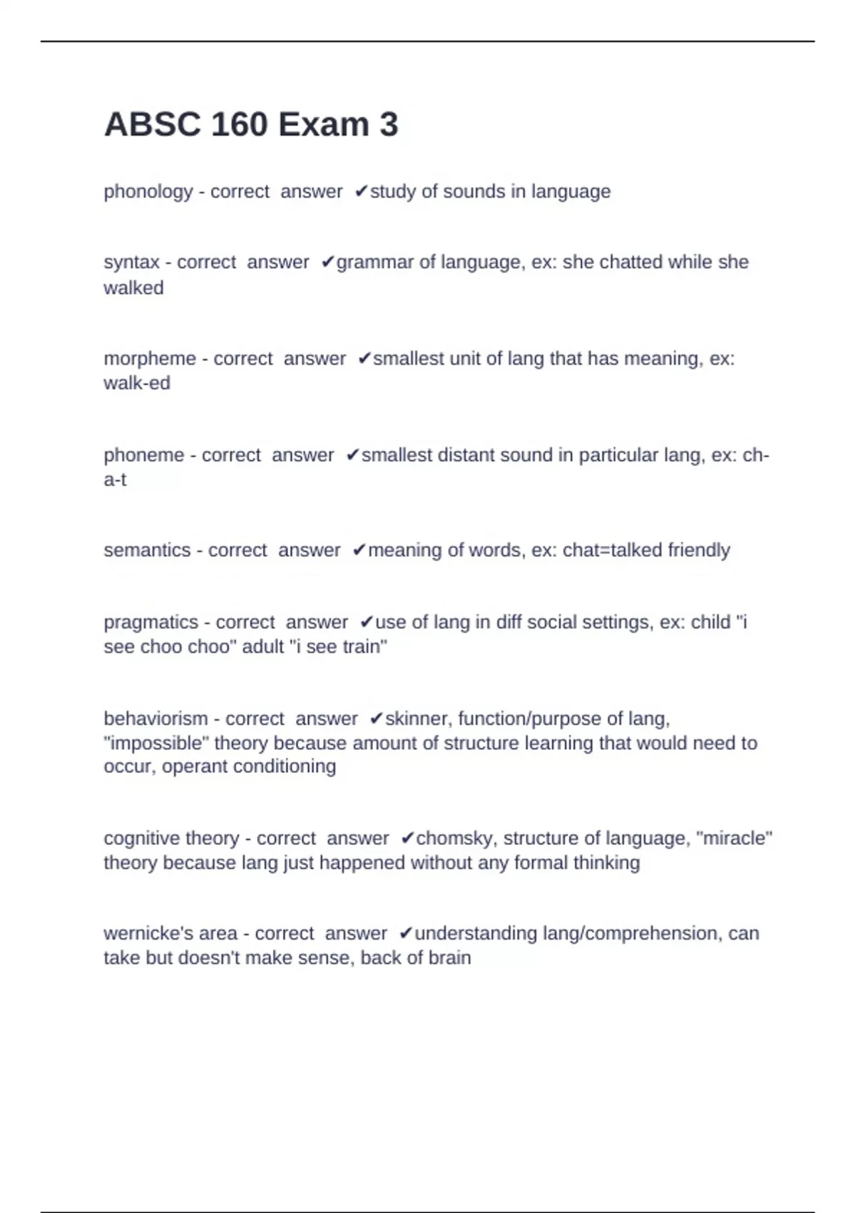 morpheme - correct answer ✔smallest unit of lang that has meaning, ex: