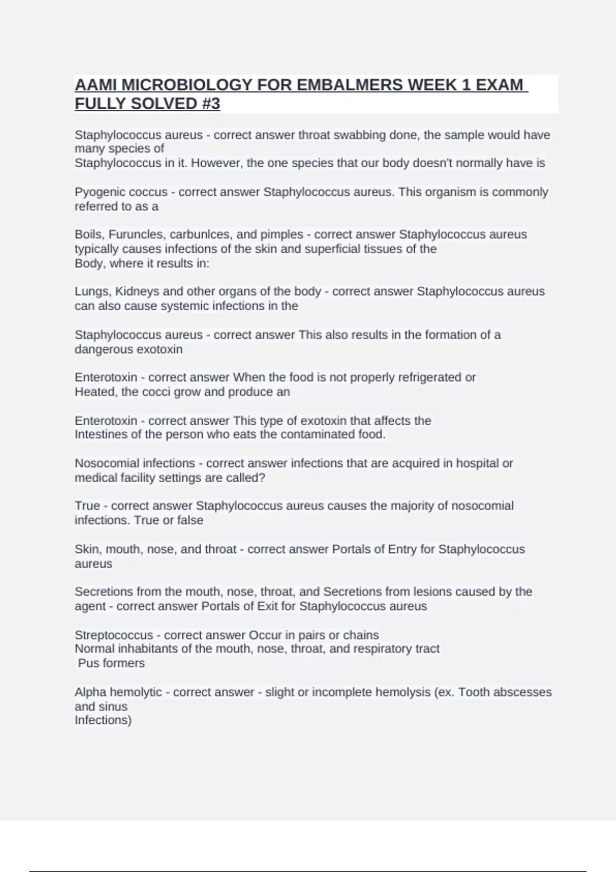 Streptococcus - correct answer Occur in pairs or chains