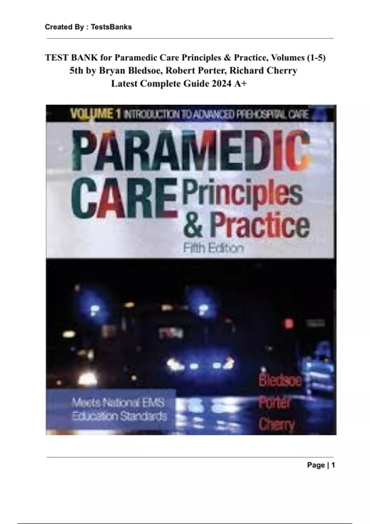 TEST BANK for Paramedic Care Principles & Practice, Volumes (1-5) 5th by Bryan Bledsoe, Robert Porter, Richard Cherry Latest Complete Guide 2024 A+