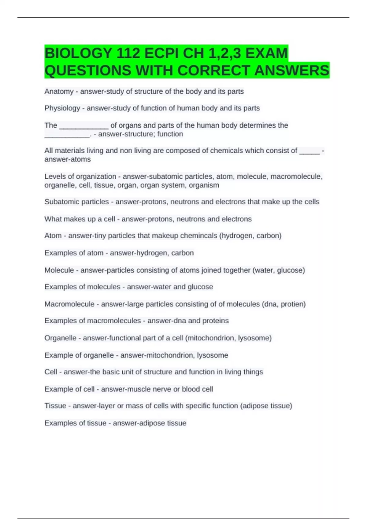 BIOLOGY 112 ECPI CH 1,2,3 EXAM