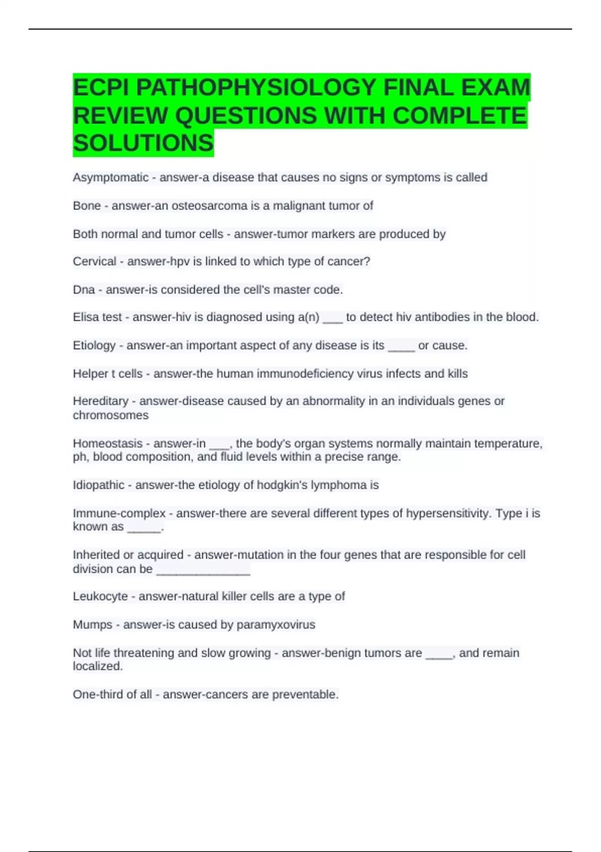 ECPI PATHOPHYSIOLOGY FINAL EXAM