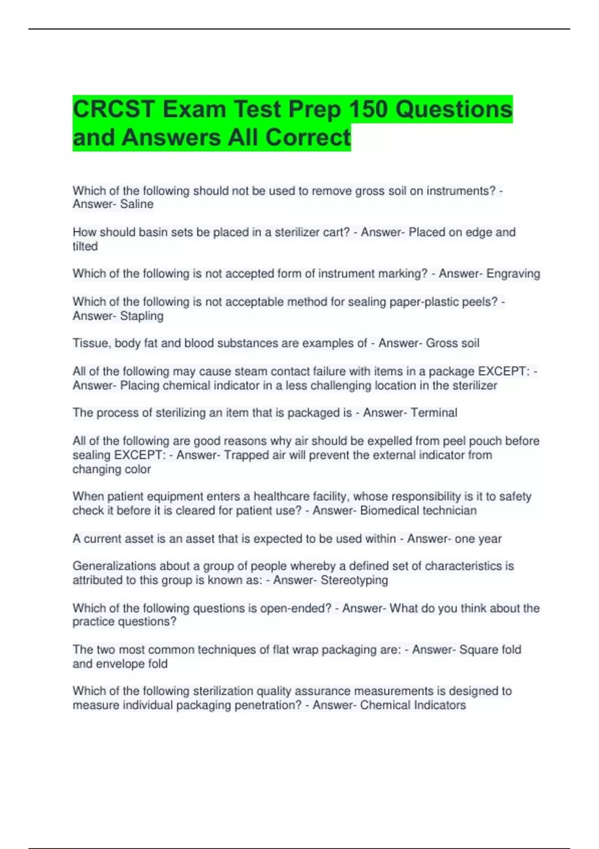 The most critical step in processing surgical instrumentation is - Answer- cleaning
