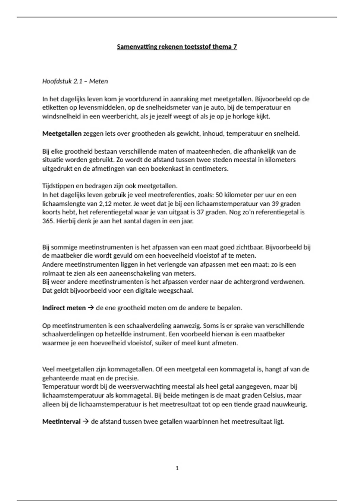 Samenvatting rekenen toetsstof thema 7