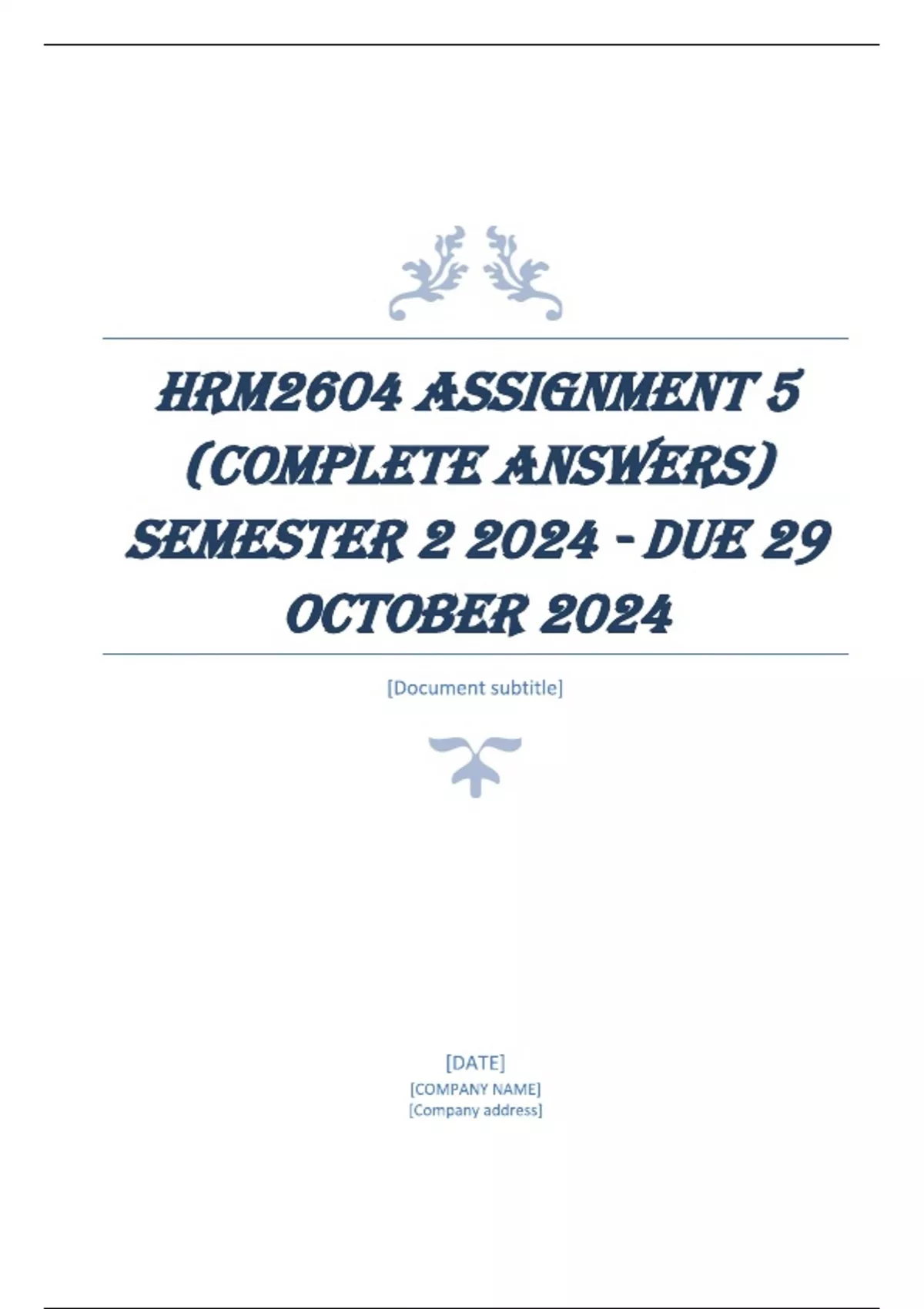 HRM2604 Assignment 5 (COMPLETE ANSWERS) Semester 2 2024 - DUE 29 October 2024