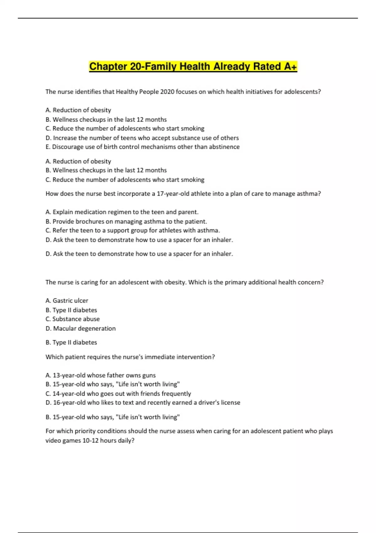 The nurse is caring for an adolescent with obesity. Which is the primary additional health concern?