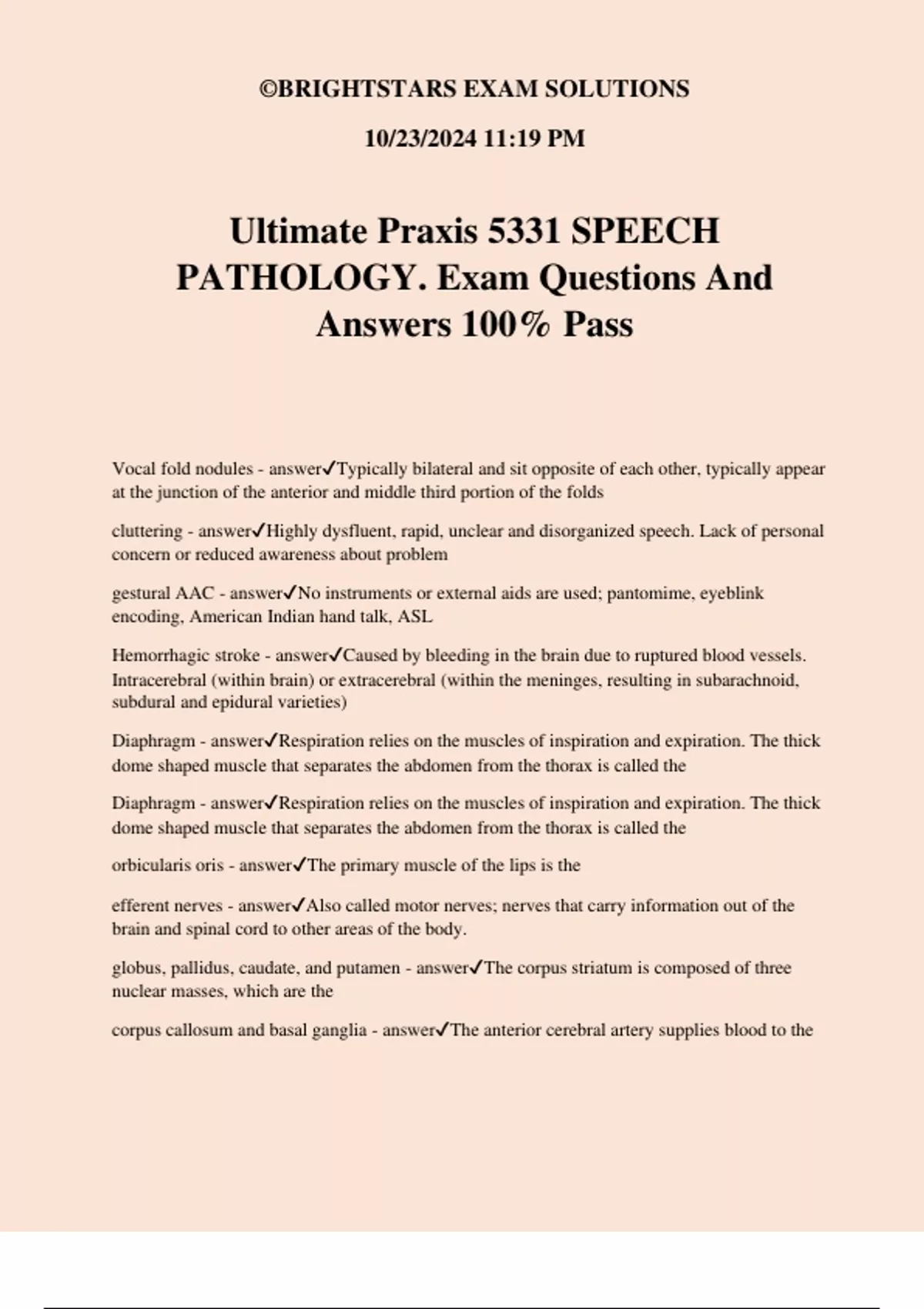 PATHOLOGY. Exam Questions And