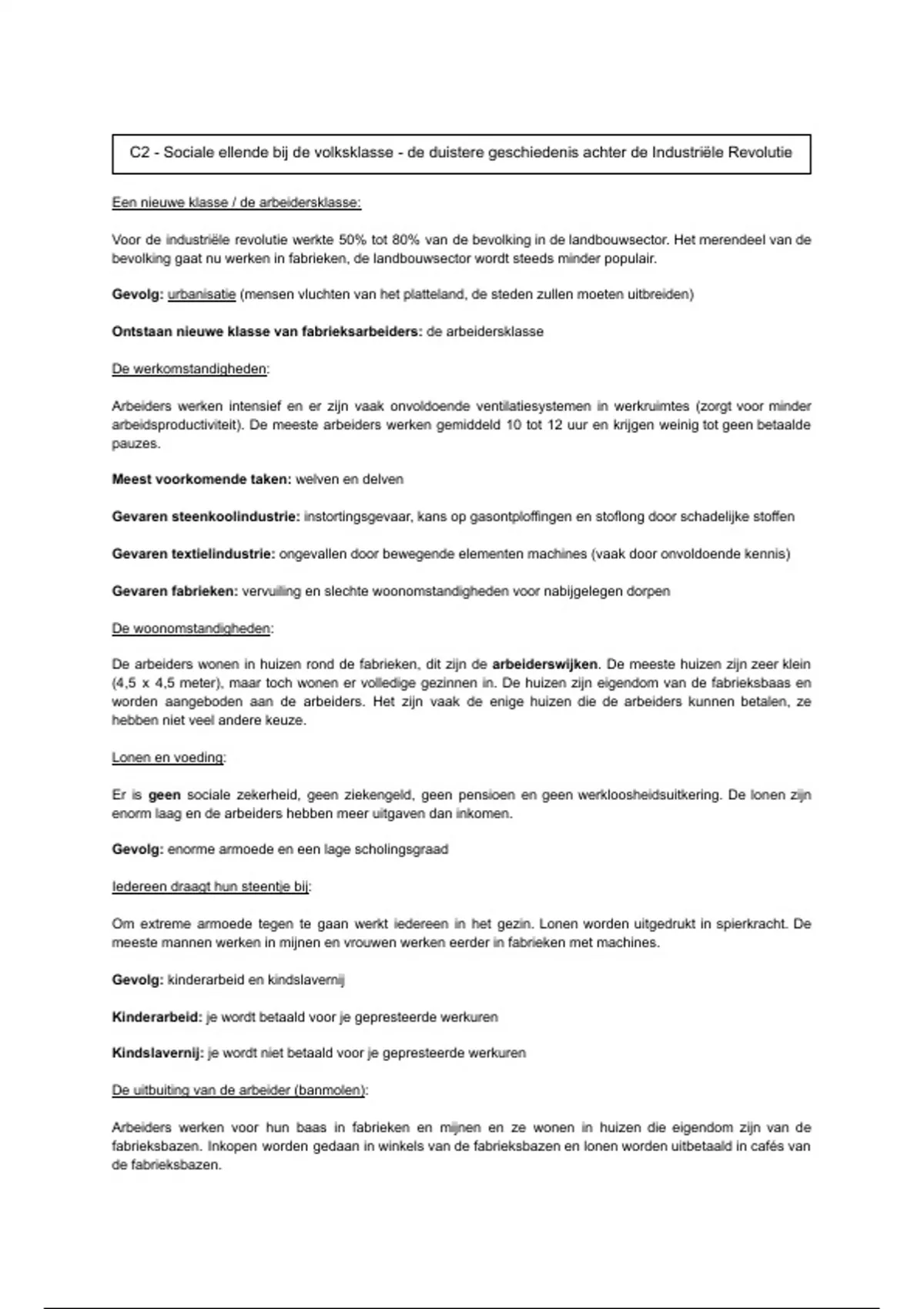 Arbeiders werken voor hun baas in fabrieken en mijnen en ze wonen in huizen die eigendom zijn van de