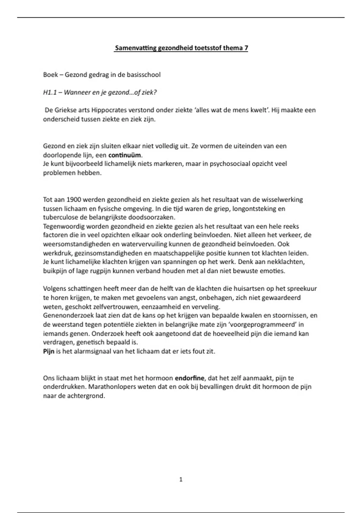 Samenvatting Toetsstof gezondheid thema 7, Pabo 2