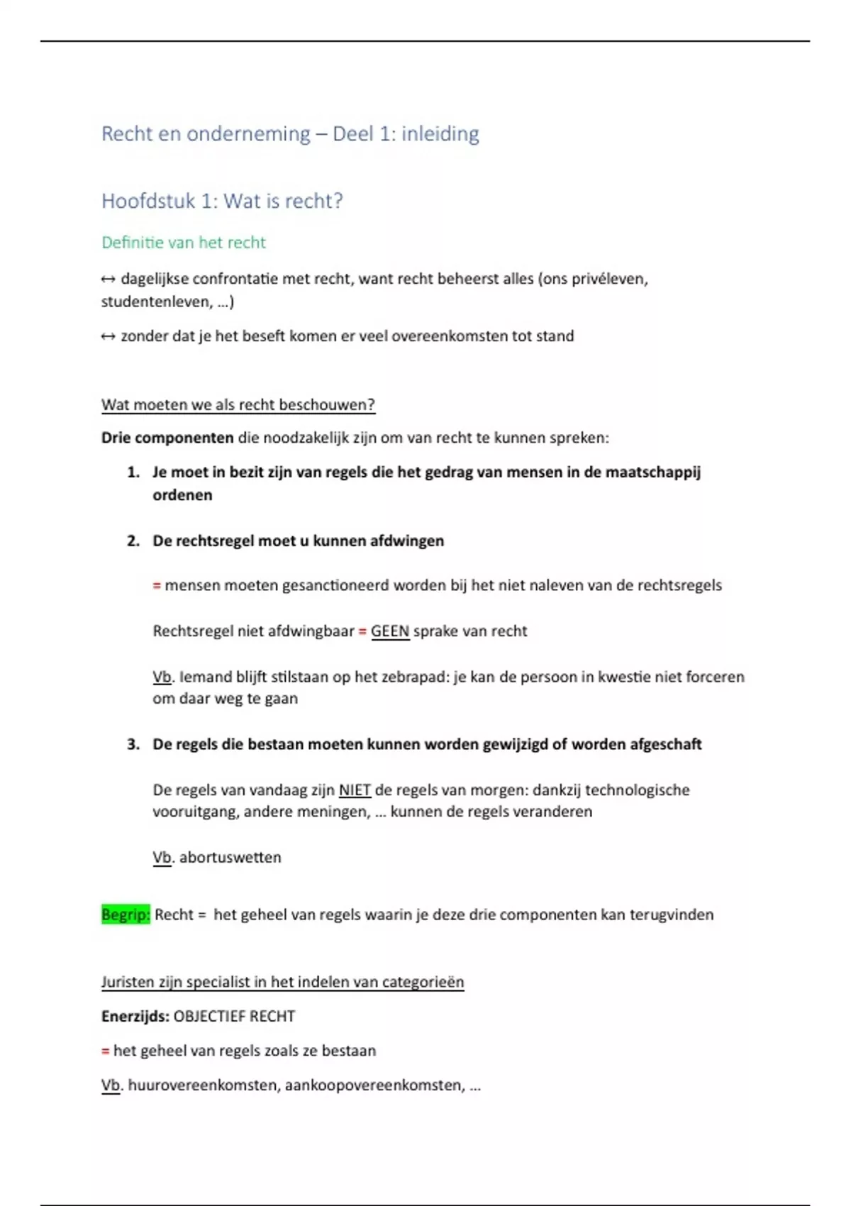 Begrip: Recht = het geheel van regels waarin je deze drie componenten kan terugvinden