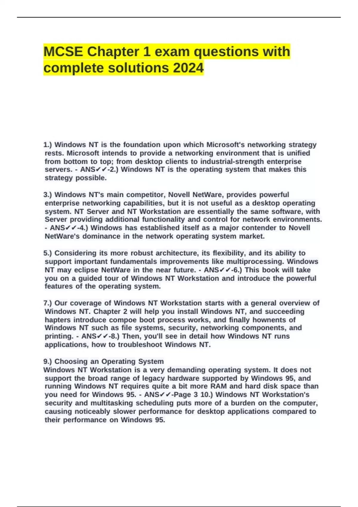 MCSE Chapter 1 exam questions with complete solutions 2024