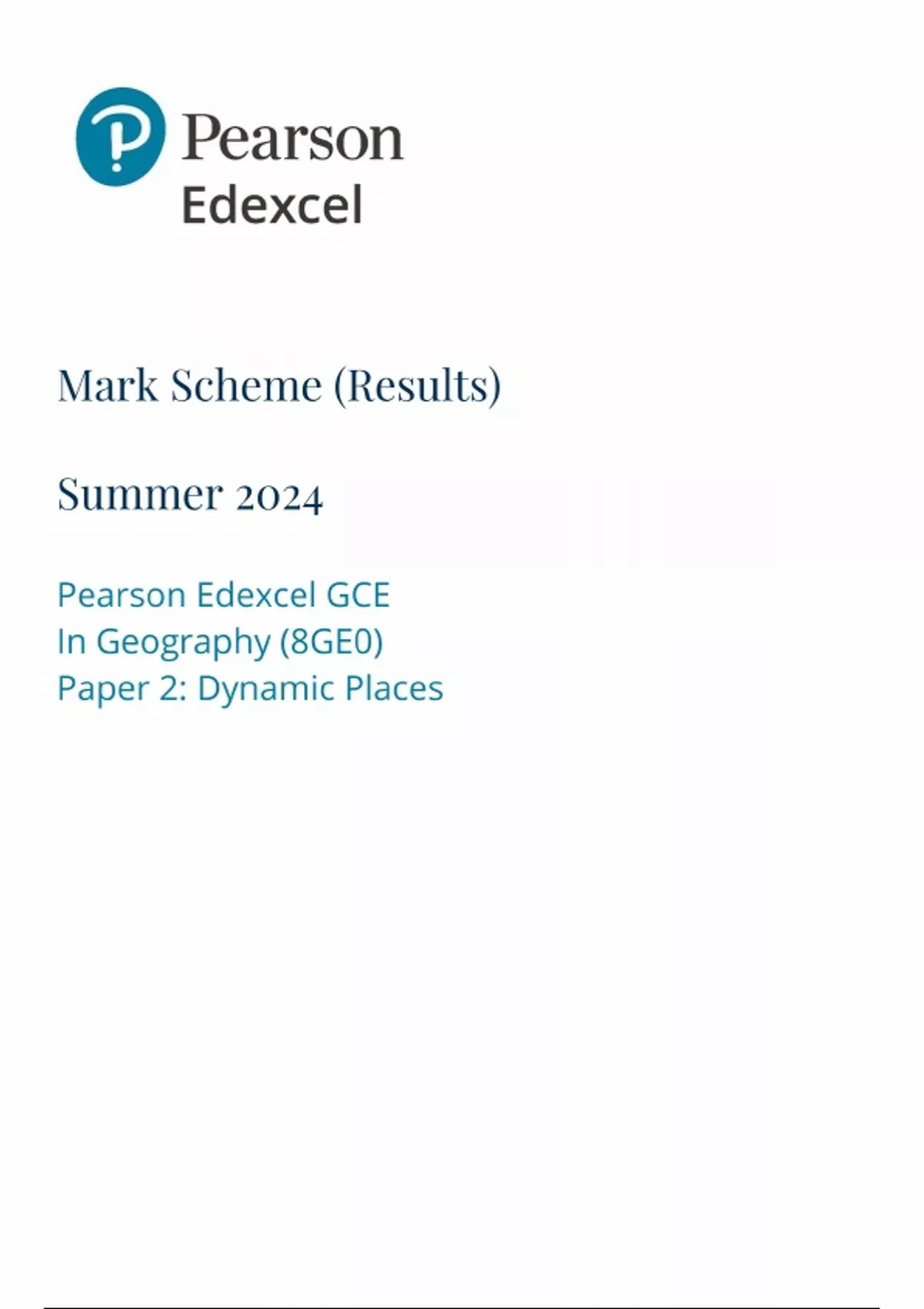 PEARSON EDEXCEL AS Geography PAPER 2 MARK SCHEME 2024 8GE0/02: Dynamic Places