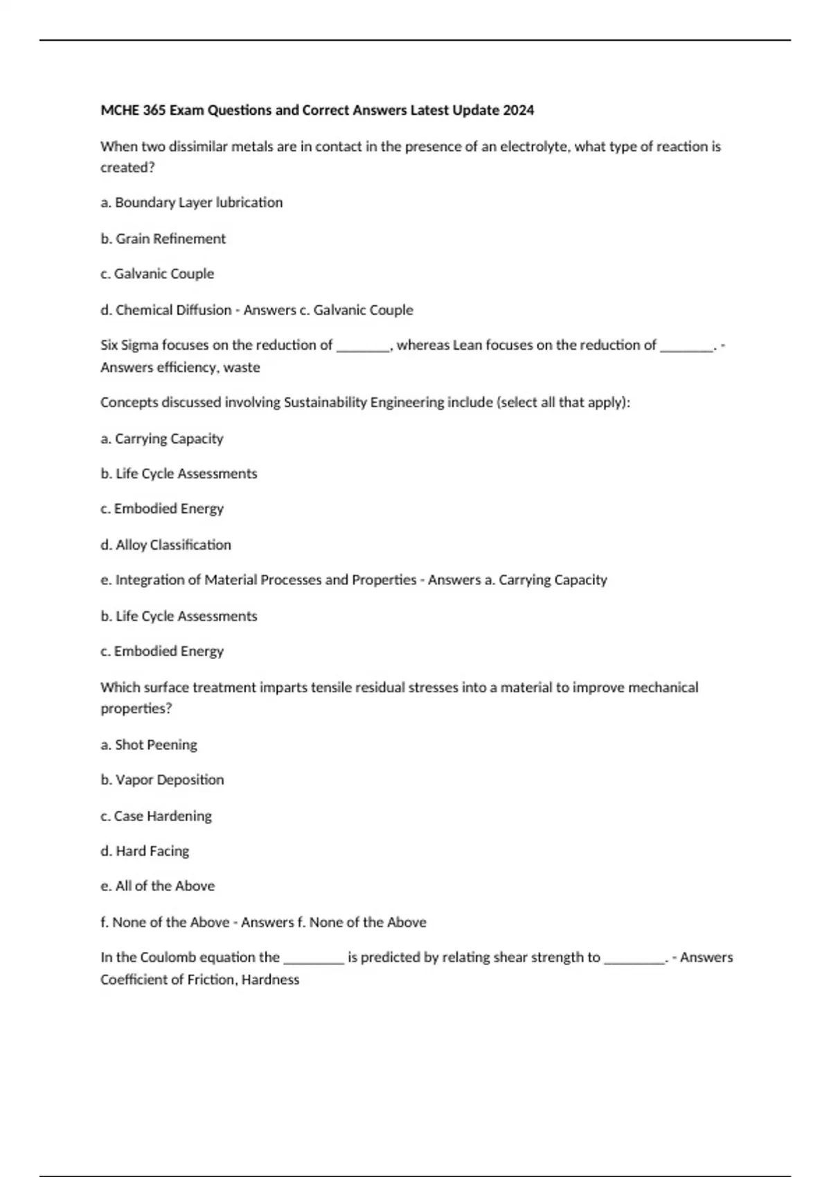 e. Integration of Material Processes and Properties - Answers a. Carrying Capacity