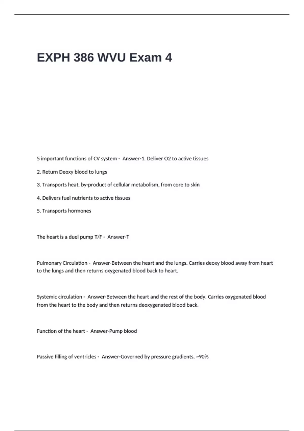5 important functions of CV system - Answer-1. Deliver O2 to active tissues