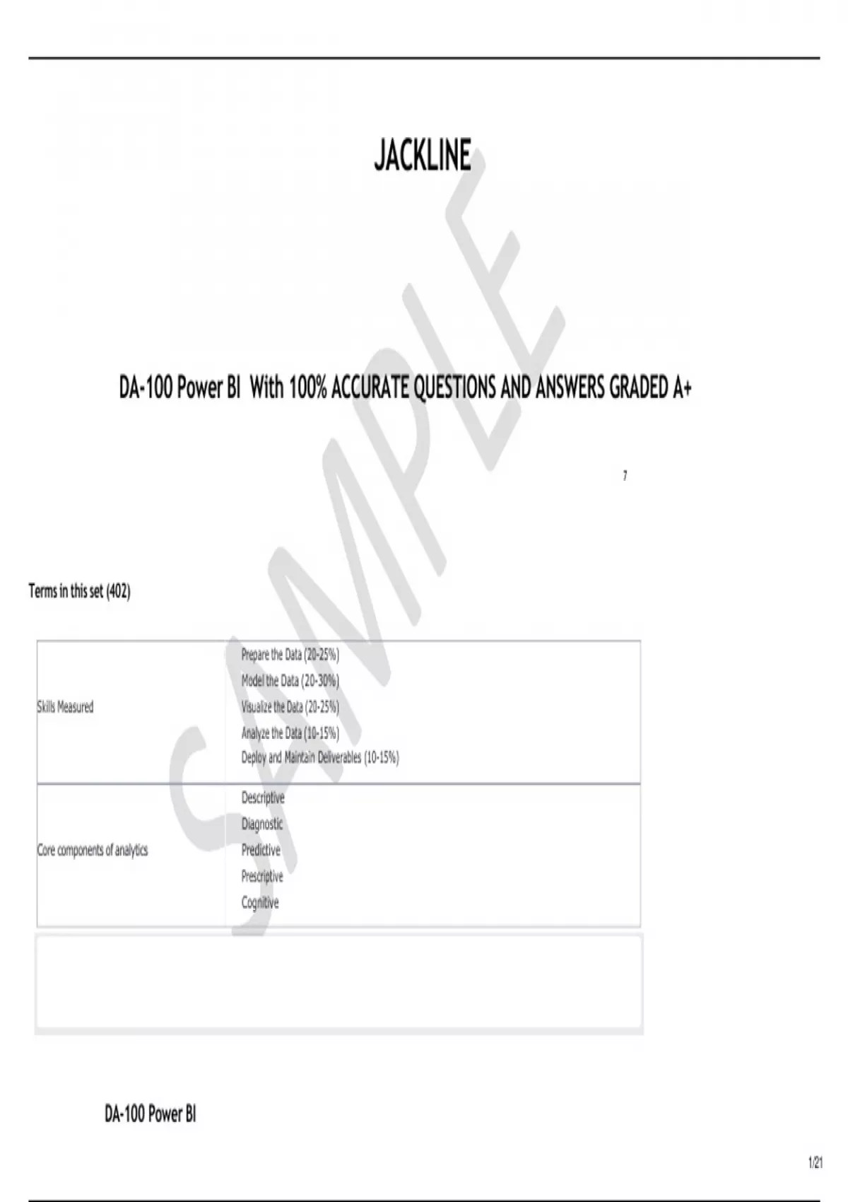 DA-100 Power BI With 100% ACCURATE QUESTIONS AND ANSWERS GRADED A+