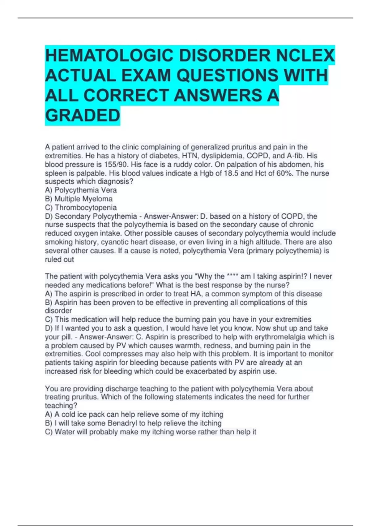 therapeutic blood draws - Answer-Answer: D. The patient with polycythemia vera should