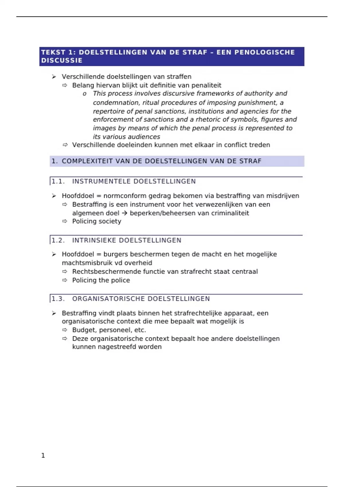 1. COMPLEXITEIT VAN DE DOELSTELLINGEN VAN DE STRAF