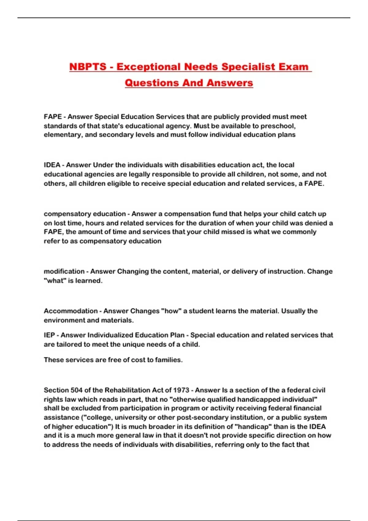 IEP - Answer Individualized Education Plan - Special education and related services that