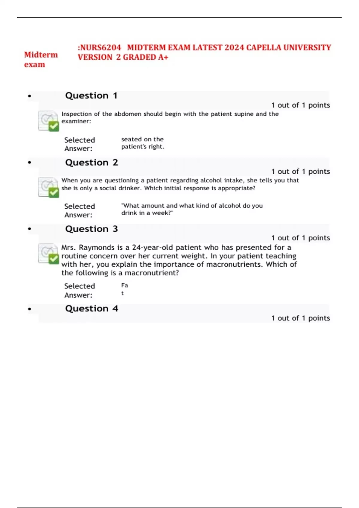:NURS6204 MIDTERM EXAM LATEST 2024 CAPELLA UNIVERSITY
