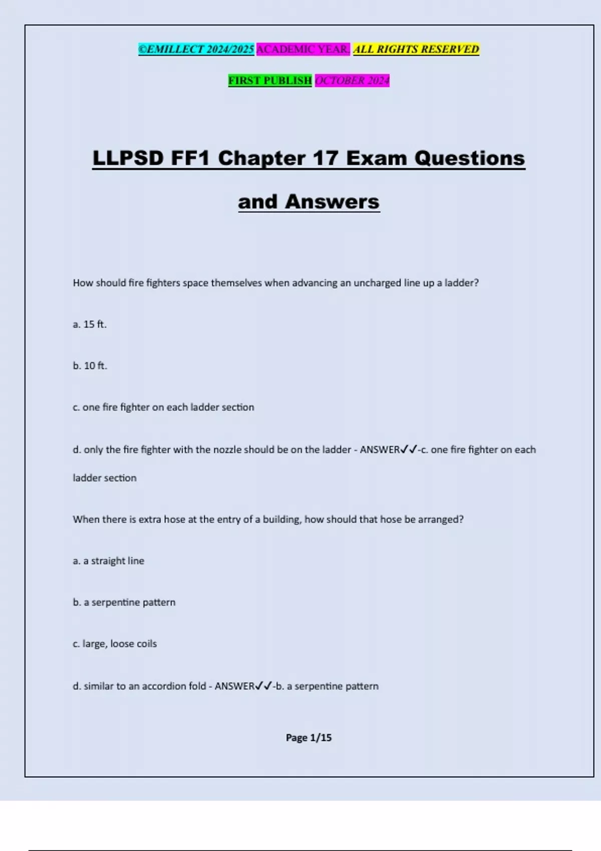 LLPSD FF1 Chapter 17 Exam Questions