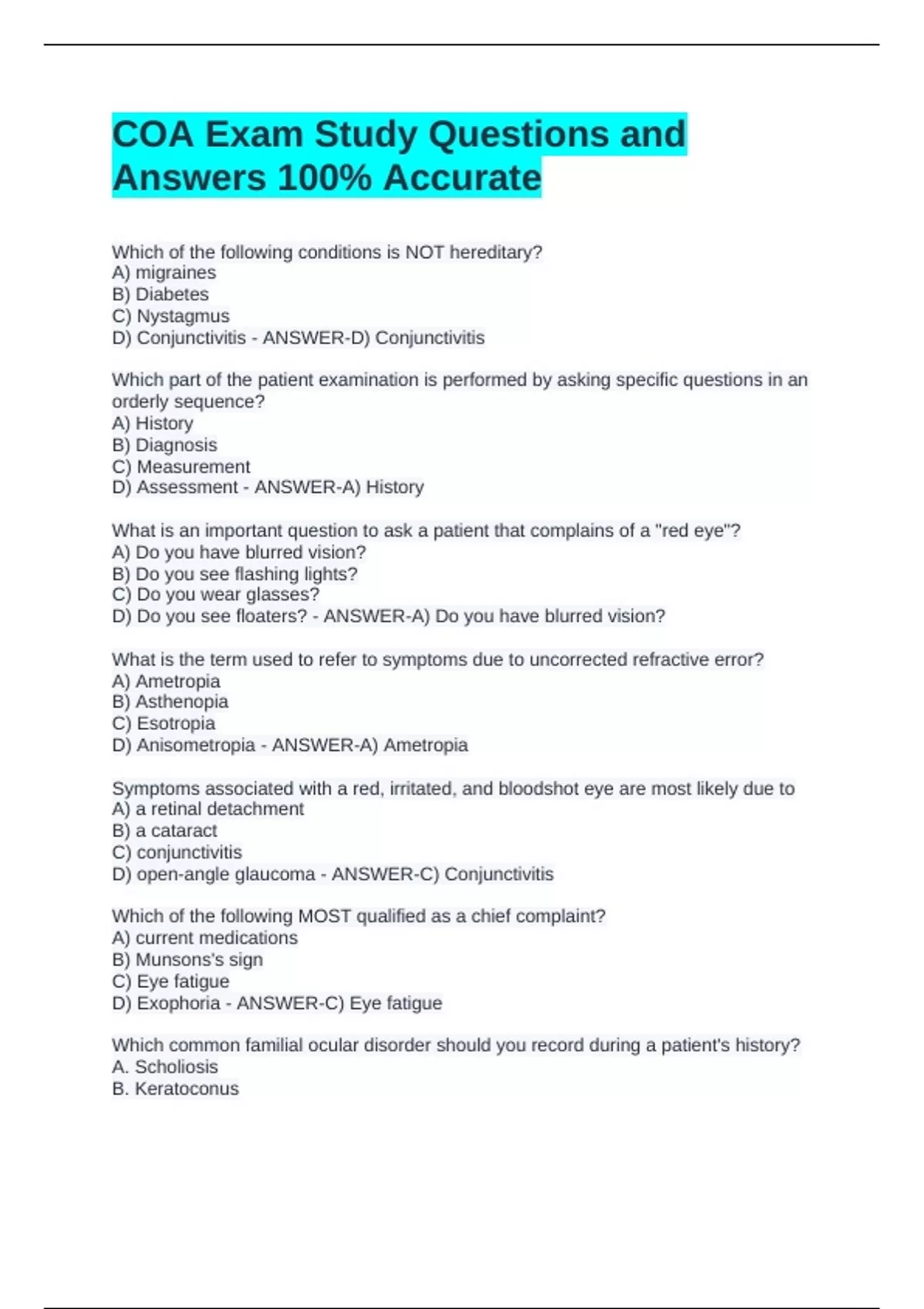 D) open-angle glaucoma - ANSWER-C) Conjunctivitis
