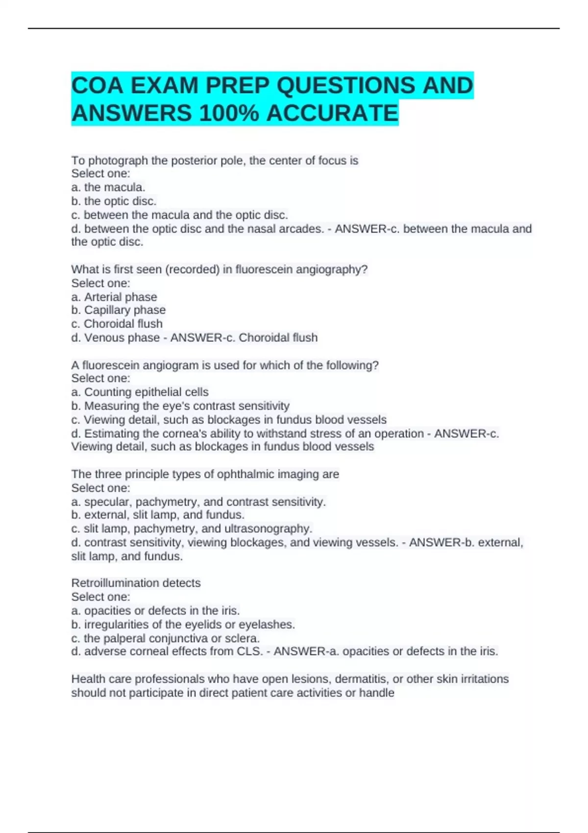 d. between the optic disc and the nasal arcades. - ANSWER-c. between the macula and
