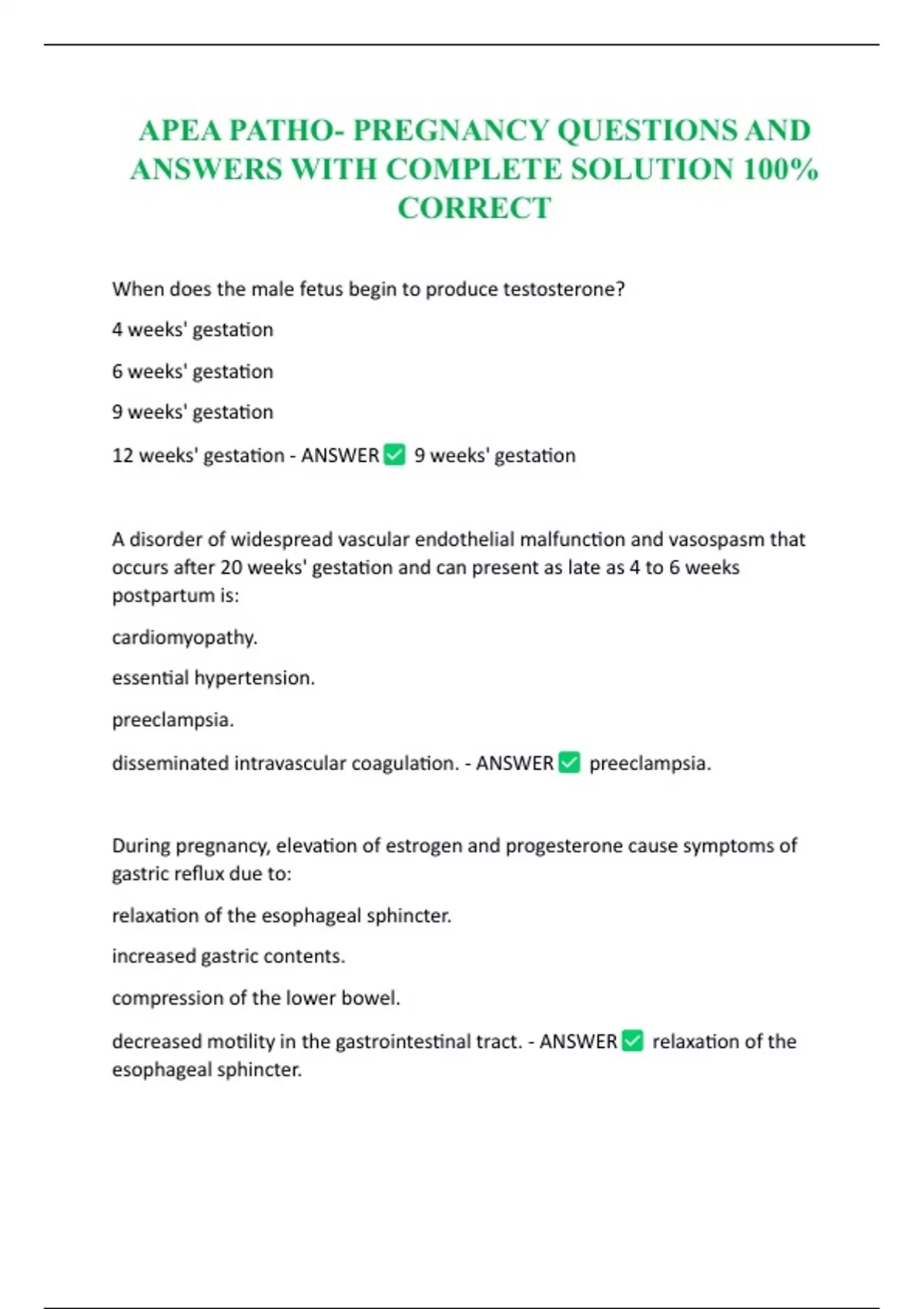 APEA PATHO- PREGNANCY QUESTIONS AND