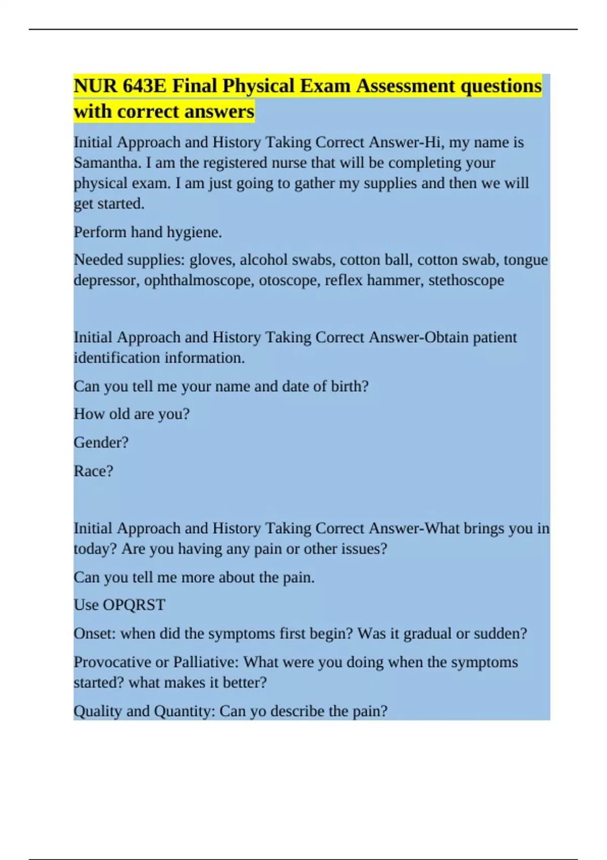 Initial Approach and History Taking Correct Answer-Obtain patient