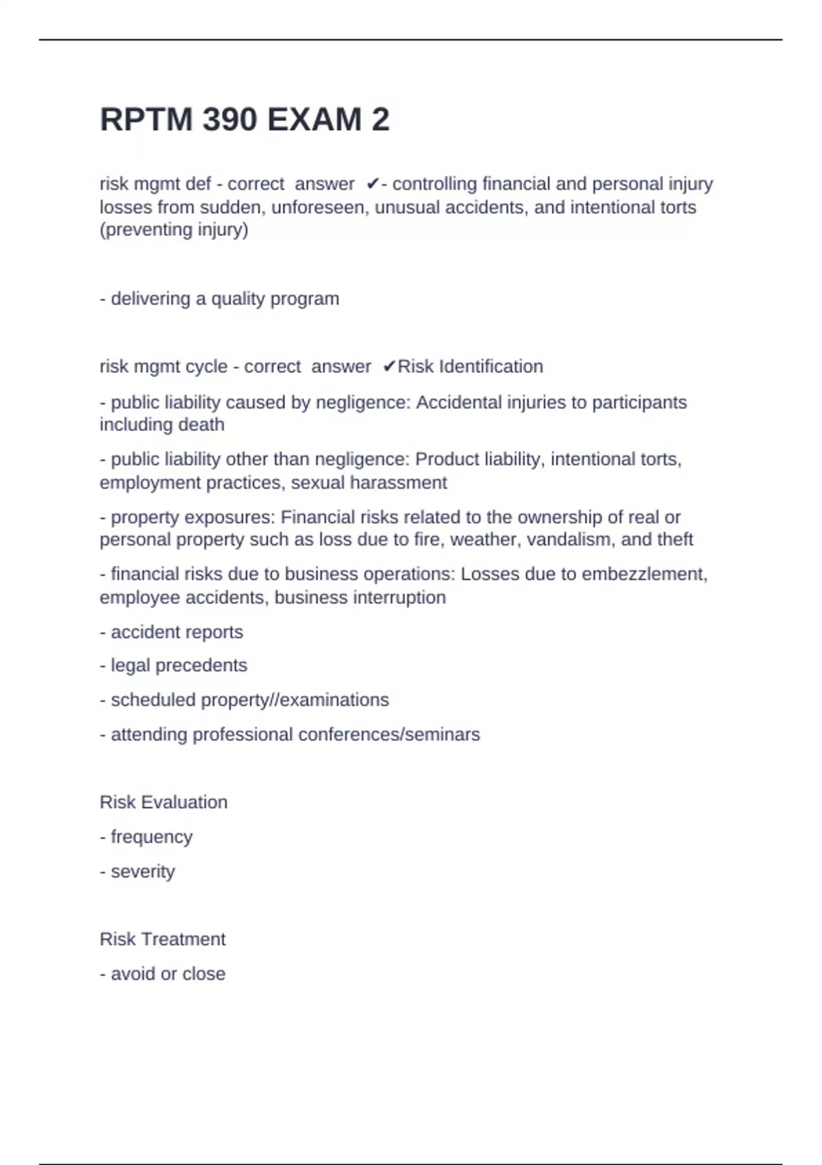 risk mgmt def - correct answer ✔- controlling financial and personal injury